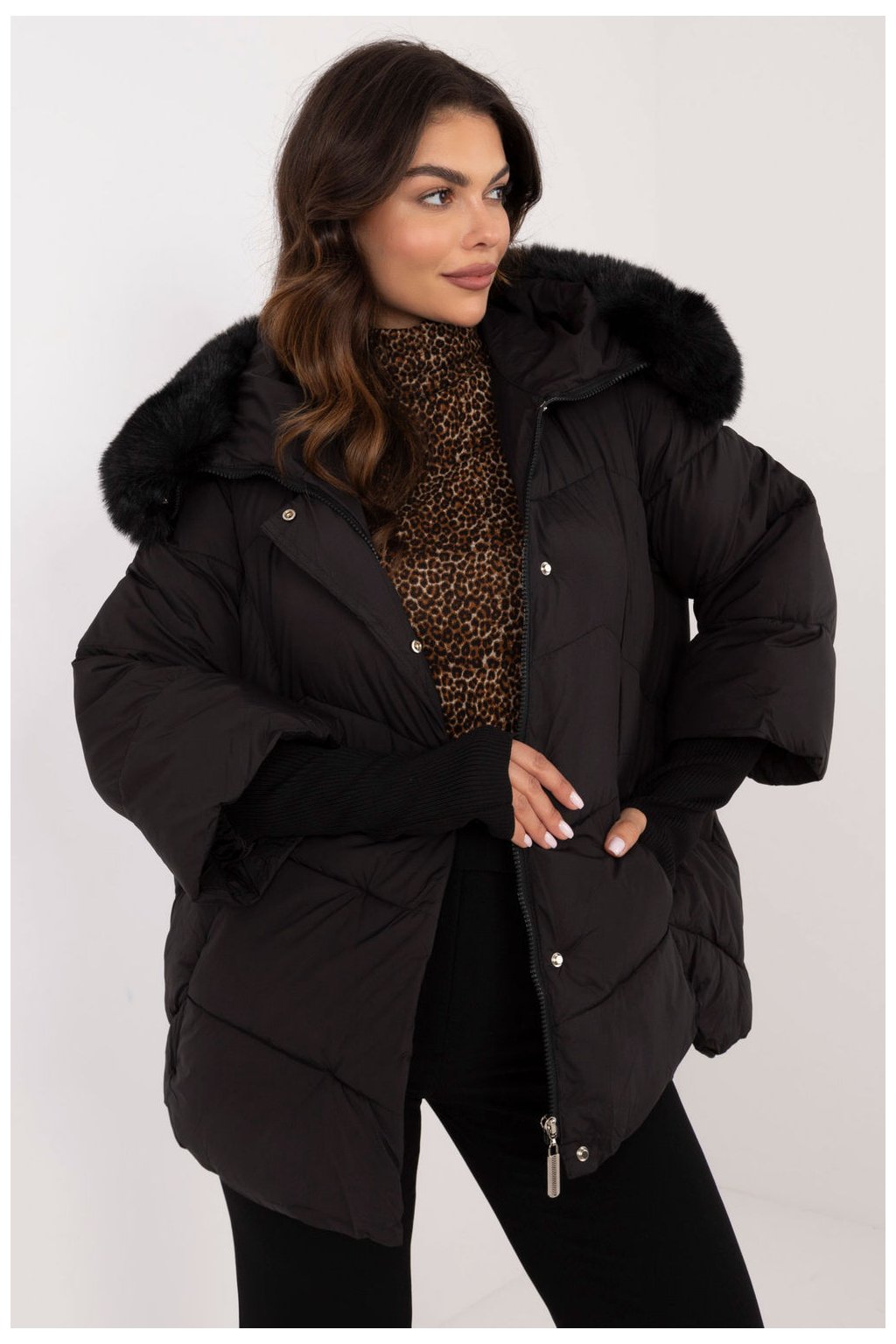 Dámská prošívaná bunda v ležérním stylu, ideální pro každodenní vycházky v chladnějších podzimních a zimních dnech. Je vyrobena z polyesteru a je vybavena syntetickou izolací, která zajišťuje teplo a pohodlí. Hladký vzor a stylové prošívání dodávají bundě elegantní a zároveň ležérní vzhled. Bunda má standardní délku a kapuci lemovanou odnímatelnou kožešinou, což umožňuje přizpůsobit vzhled příležitosti nebo počasí. Dlouhé rukávy zakončené širokými žebrovanými manžetami poskytují dodatečnou ochranu před chladem a větrem. Zapínání na zip a patentky zajišťuje účinnou ochranu před chladem, zatímco nakládané kapsy nabízejí praktický prostor pro drobnosti. Vnitřní podšívka přispívá k pohodlí, takže bunda je ideální pro každodenní nošení.