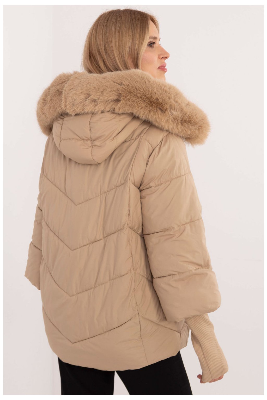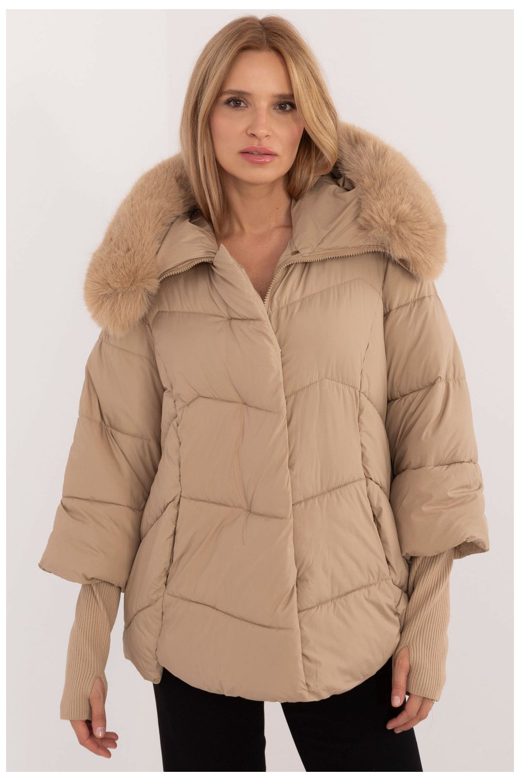 Dámská prošívaná bunda v ležérním stylu, ideální pro každodenní vycházky v chladnějších podzimních a zimních dnech. Je vyrobena z polyesteru a je vybavena syntetickou izolací, která zajišťuje teplo a pohodlí. Hladký vzor a stylové prošívání dodávají bundě elegantní a zároveň ležérní vzhled. Bunda má standardní délku a kapuci lemovanou odnímatelnou kožešinou, což umožňuje přizpůsobit vzhled příležitosti nebo počasí. Dlouhé rukávy zakončené širokými žebrovanými manžetami poskytují dodatečnou ochranu před chladem a větrem. Zapínání na zip a patentky zajišťuje účinnou ochranu před chladem, zatímco nakládané kapsy nabízejí praktický prostor pro drobnosti. Vnitřní podšívka přispívá k pohodlí, takže bunda je ideální pro každodenní nošení.