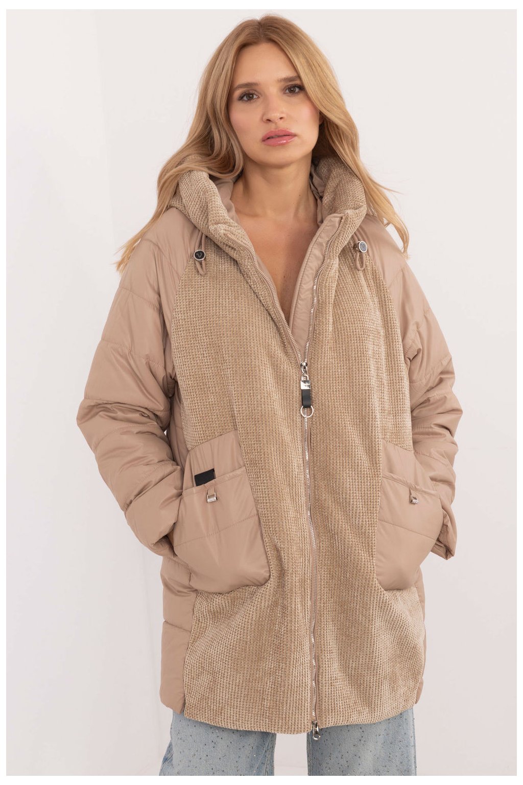 Dámská ležérní bunda s módní manšestrovou přední částí a kapucí, ideální pro každodenní vycházky v podzimním, zimním a jarním období. Je vyrobena z odolného polyesteru a kombinuje funkčnost s moderním designem. Hladký vzor a ozdobné prošívání dodávají bundě jedinečný charakter. Bunda má syntetickou izolaci, která vás udrží v teple v chladnějších dnech. Standardní délka a kapuce z manšestru poskytují stylovou ochranu před nepřízní počasí. Zapínání na zip a přídavné patentky zaručují pohodlí a dobrou izolaci před větrem. Praktickým doplňkem jsou nakládané kapsy a vnitřní podšívka přispívá k pohodlí. Stylová a praktická, ideální pro každodenní nošení.