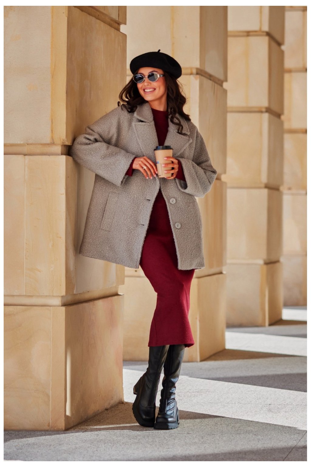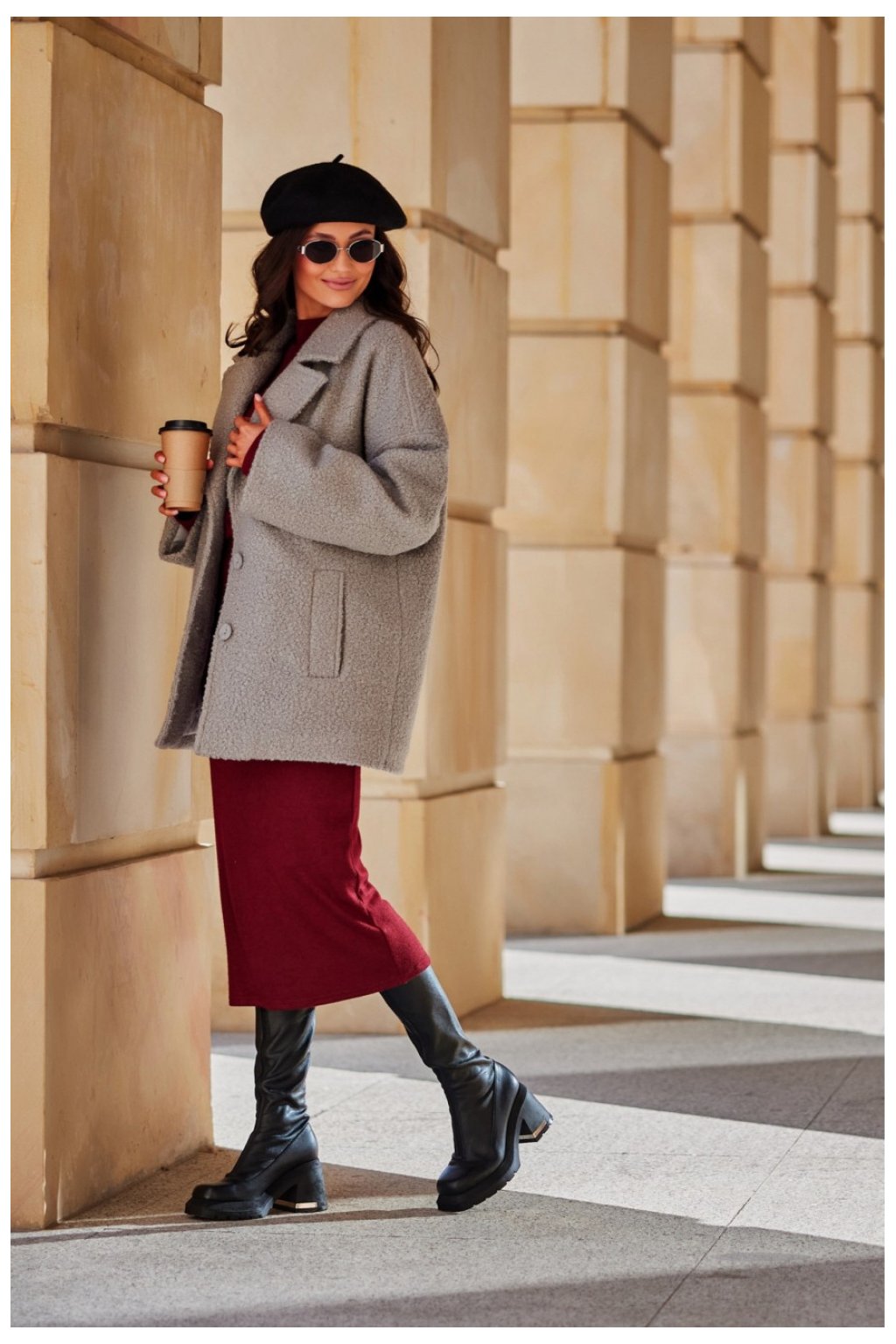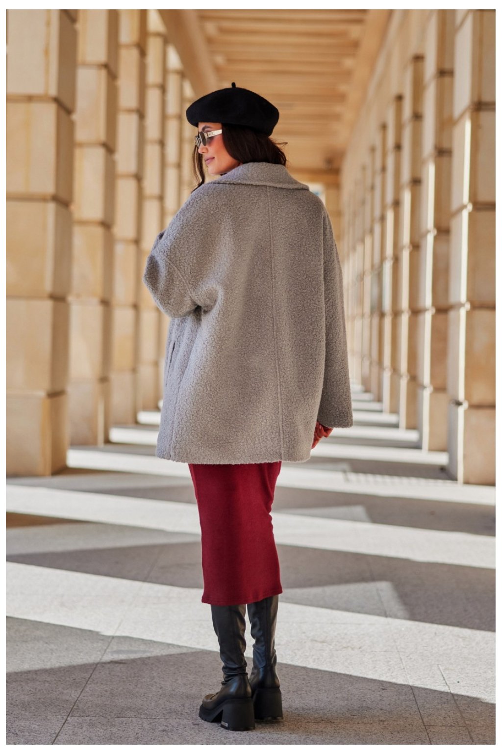 Bunda Camila byla vyrobena z příjemného materiálu, který zajistí teplo a efektní vzhled. Bunda má došívání, podšívku s izolací, která navíc chrání před chladem na podzim a v zimě. Klasický límec a snížená ramenní linie dodávají bundě zajímavý střih, který krásně vypadá na ženské postavě. Zapíná se na knoflíky, což zaručuje pohodlí a dodatečnou ozdobu. Bunda je funkční díky kapsám umístěným po stranách. Bunda Camila bude skvělým doplňkem k denním i elegantním stylizacím. Zajistí teplo, ochrání před chladem a přidá moderní akcent. V kombinaci s velkou kabelkou typu shopper a dlouhými semišovými kozačkami vytvoří plný styl, který upoutá pozornost všech kolemjdoucích. Produkt je vyroben a ušit v Polsku.