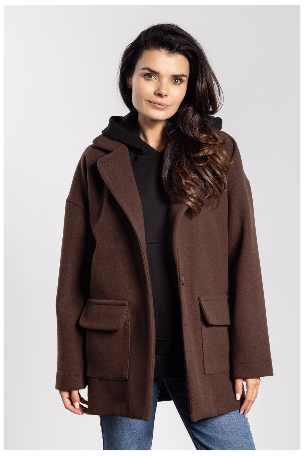 Stylová dámská oversize bunda je kombinací minimalismu a moderního designu. Volný střih poskytuje pohodlí a volnost pohybu, a praktické kapsy s klapkou zvyšují funkcionalitu. Zapínání na knoflík zdůrazňuje jednoduchou, elegantní linii, a mírně snížená ramenní linie dává bundě moderní, ležérní charakter. Model se skvěle hodí do každodenních stylizací, kombinovaný s džíny, kalhotami nebo šaty, vytvářející univerzální a efektní outfity na chladnější dny.
