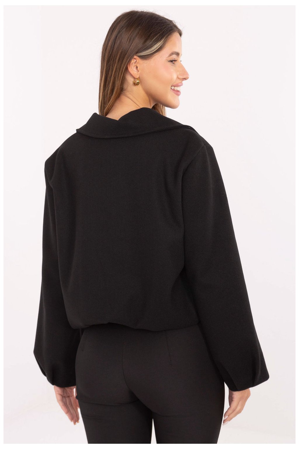 Lehká přechodná bunda v moderním, trochu volnějším střihu typu balón, vyrobená z vysoce kvalitního polyesteru. Model má kratší střih, dlouhý rukáv a praktické zapínání na zip, díky čemuž je pohodlná a funkční na běžné nošení. Bunda má límec a podšívku, což zvyšuje komfort užívání a dodává jí pečlivé dokončení. Charakteristické nafouklé rukávy dodávají postavě moderní, lehce neposedný vzhled. Udržovaný v hladkém vzoru skvěle ladí s každodenními stylizacemi, ideální se hodí v podzimně-zimně-jarním období jako stylová bunda na každý den.