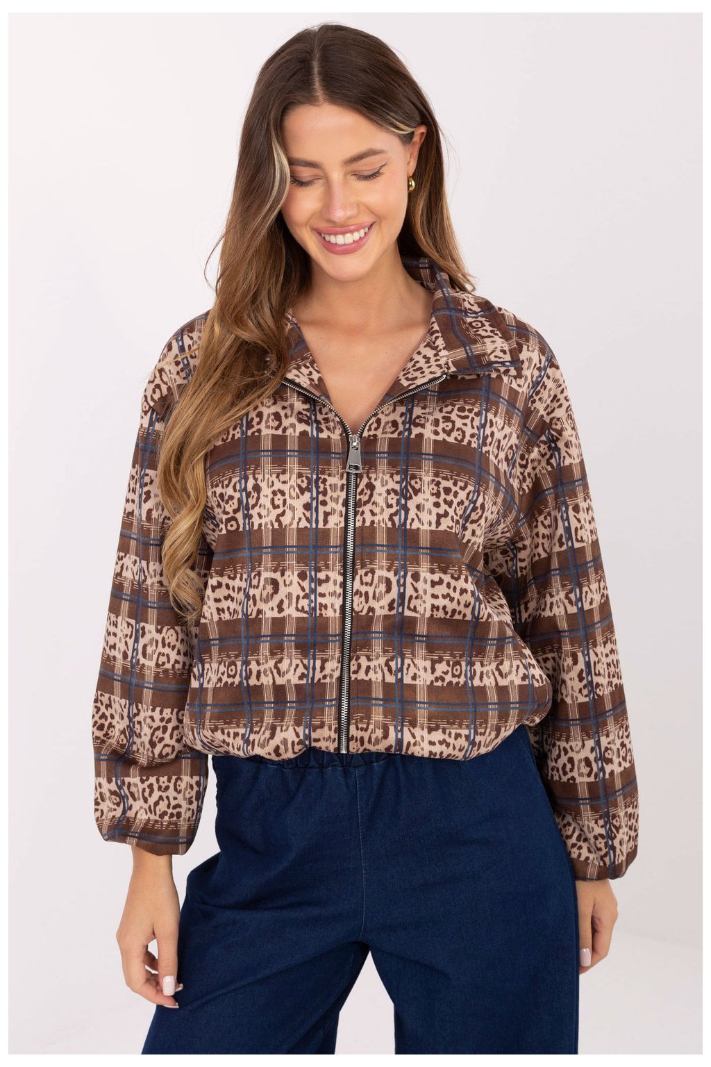 Stylová dámská bunda s casual charakterem, kombinující dva módní motivy zvířecí vzor a káro. Vyrobená z vysoce kvalitní směsi polyesteru a elastanu, poskytuje pohodlí nošení, pružnost a trvanlivost. Model standardní délky má dlouhý rukáv, límec a zapínání na zip, co mu dodává klasický a zároveň moderní vzhled. Podšívka zajišťuje pohodlí a estetické provedení. Je to skvělý návrh do každodenního, casual stylu ideální k džínům, kalhotám nebo sukním, hodí se do mnoha městských stylizací po celou sezónu.