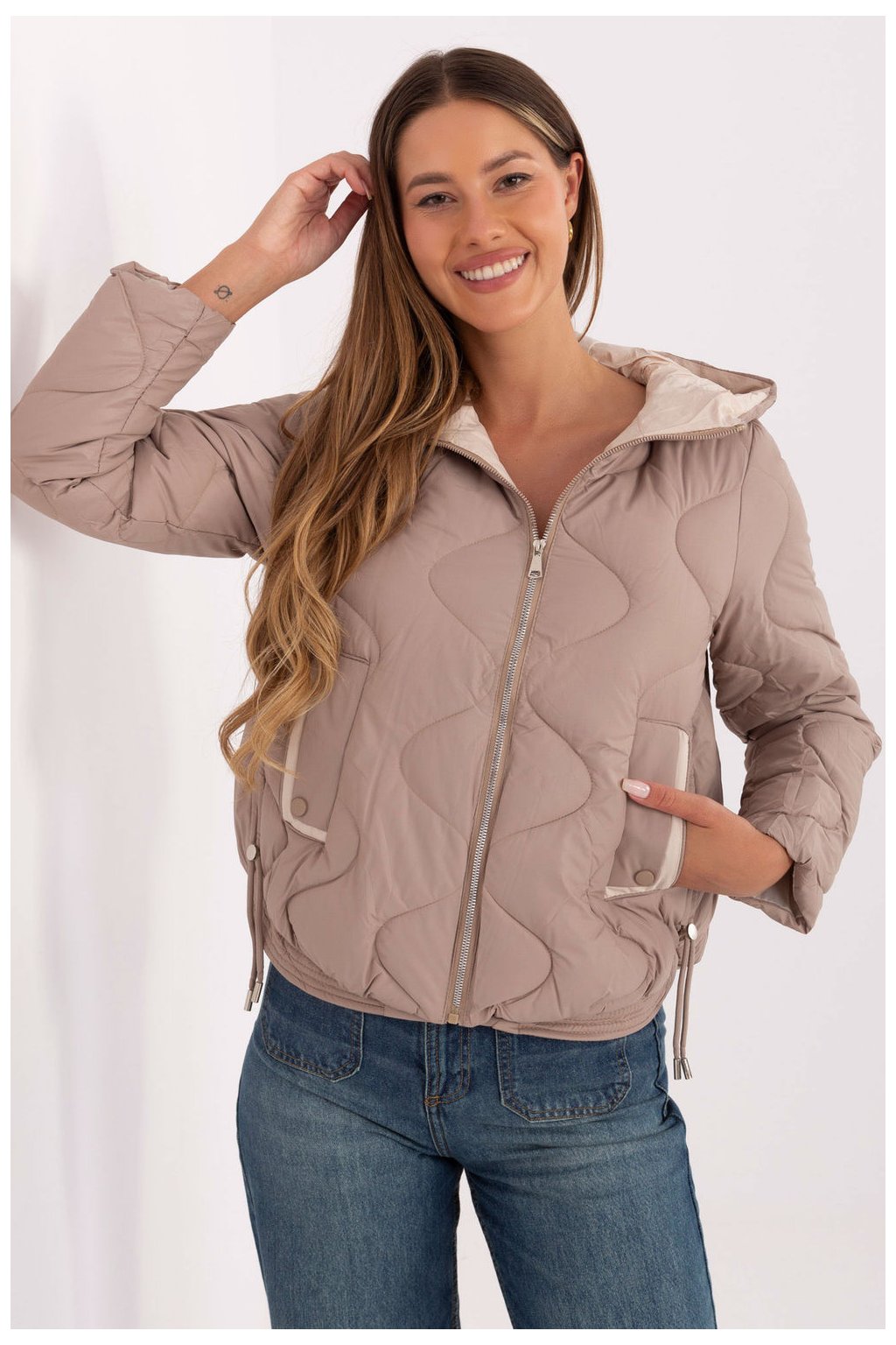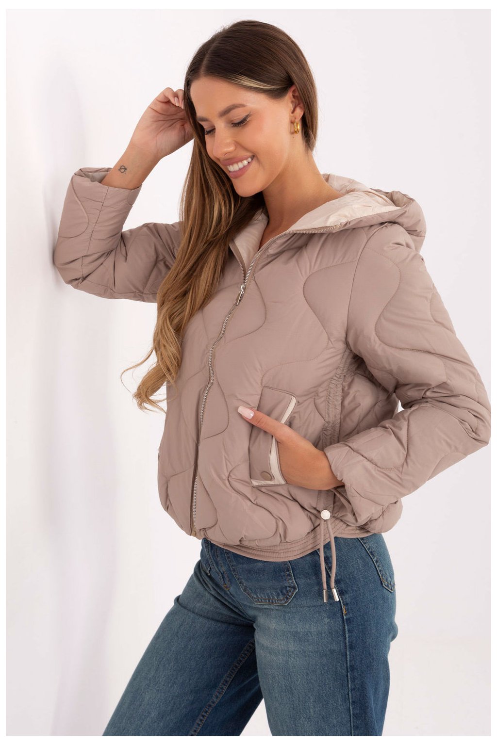 Tato dámská přechodná bunda je ideální volbou na podzim, zimu a jaro - lehká, pohodlná a stylová. Vyrobena z odolného polyesteru, skvěle chrání před chladem a větrem, zatímco syntetické plnění a podšívka s izolací poskytují tepelný komfort v proměnlivém počasí. Model má kratší střih, který zdůrazňuje siluetu a zajišťuje volnost pohybu. Květovaná struktura jí dodává moderní vzhled a hladký vzor z ní dělá vhodný doplněk k mnoha stylizacím, jak do práce, tak na každý den. Kapuce poskytuje dodatečnou ochranu v chladnějších dnech a kapsy jsou praktickým doplňkem na drobnosti nebo pro ohřátí rukou. Bundu zapnete na zip, což zaručuje pohodlné použití a moderní vzhled. Jedná se o klasickou, univerzální nabídku ve stylu casual, ideální pro ženy, které oceňují kombinaci funkčnosti a elegance.