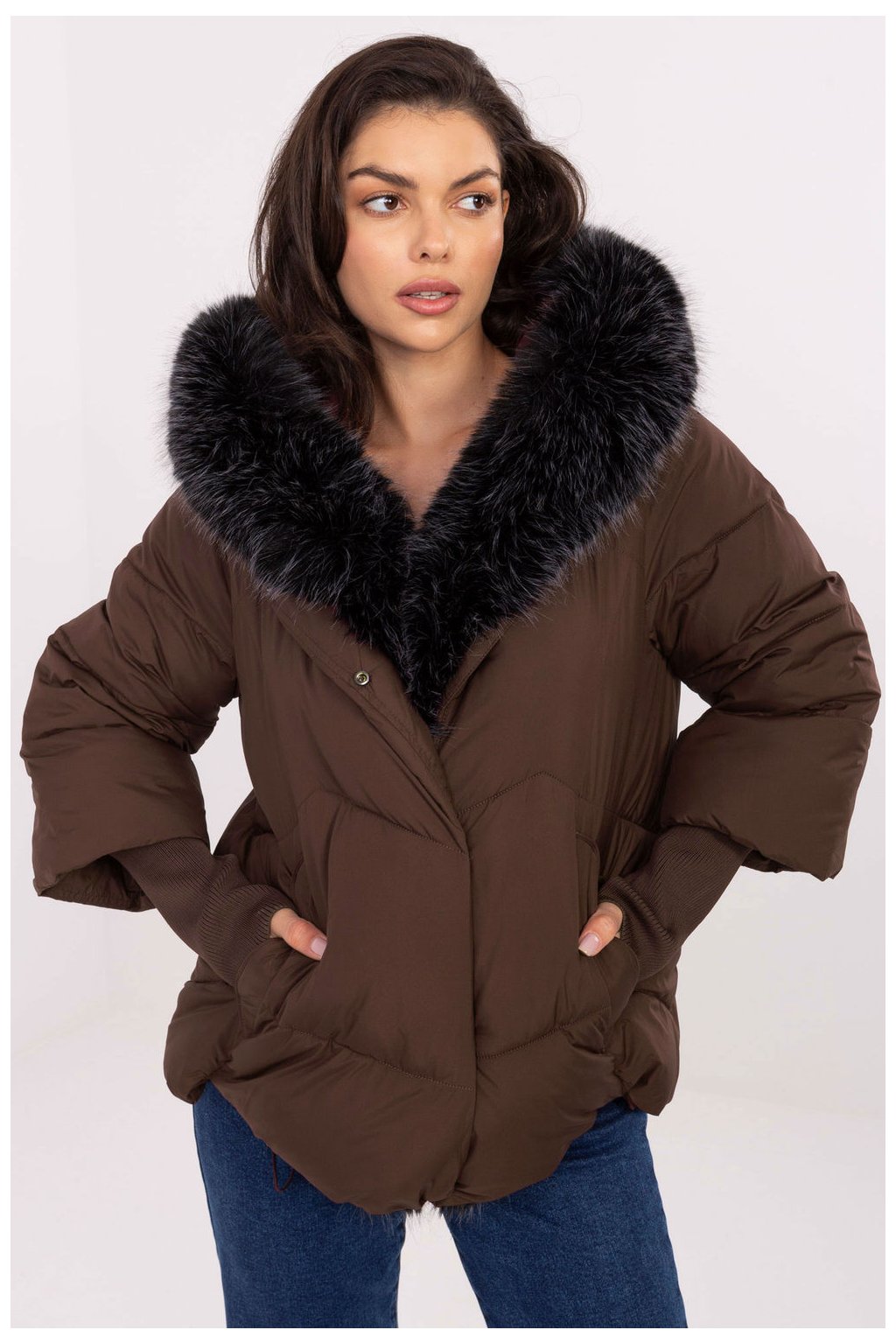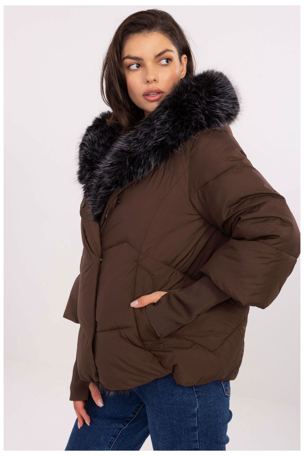 Tato dámská péřová bunda je ideální volbou na chladné dny podzim/zima, kombinuje neformální styl s funkcionalitou. Skvěle se hodí jak do každodenního života, tak do práce, poskytující ti teplo a stylový vzhled. Vyrobená z hladkého polyesteru s syntetickým zateplením, zaručuje tepelný komfort bez zbytečného zatížení. Bundu zdobí stehy a podšívka, co zvyšuje izolaci. Je vybavena praktickou kapucí s možností sundat umělé kožešiny, co ti umožní přizpůsobit její vzhled podle tvých preferencí a počasí. Dlouhý rukáv je zakončen širokými, odpínatelnými manžetami, co je módním akcentem a zároveň chrání před chladem. Standardní délka činí bundu univerzální a hodí se ke většině postav. Zapíná se na zip a má dodatečné knoflíky pro lepší ochranu před větrem. Má pohodlné kapsy na zahřátí rukou.