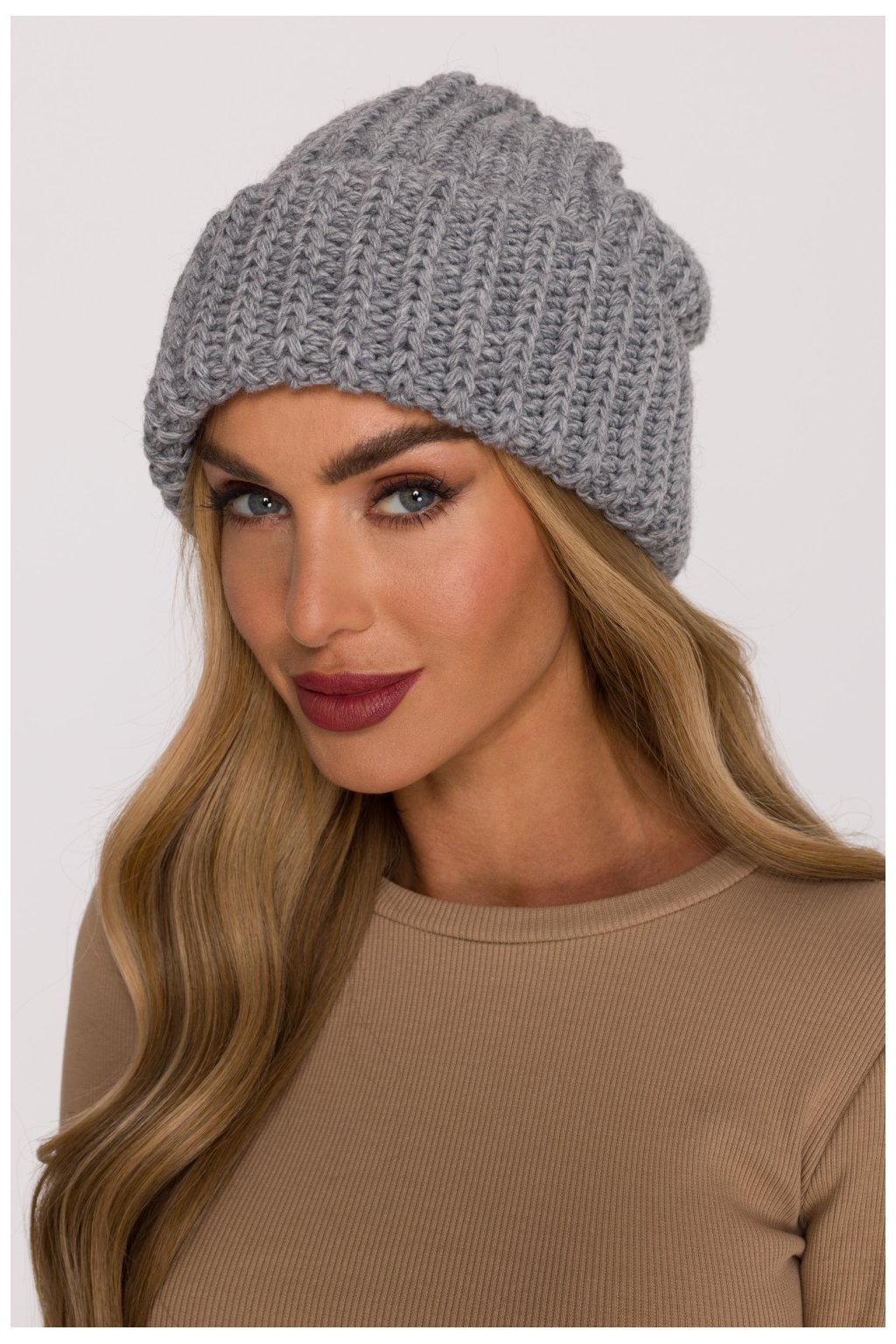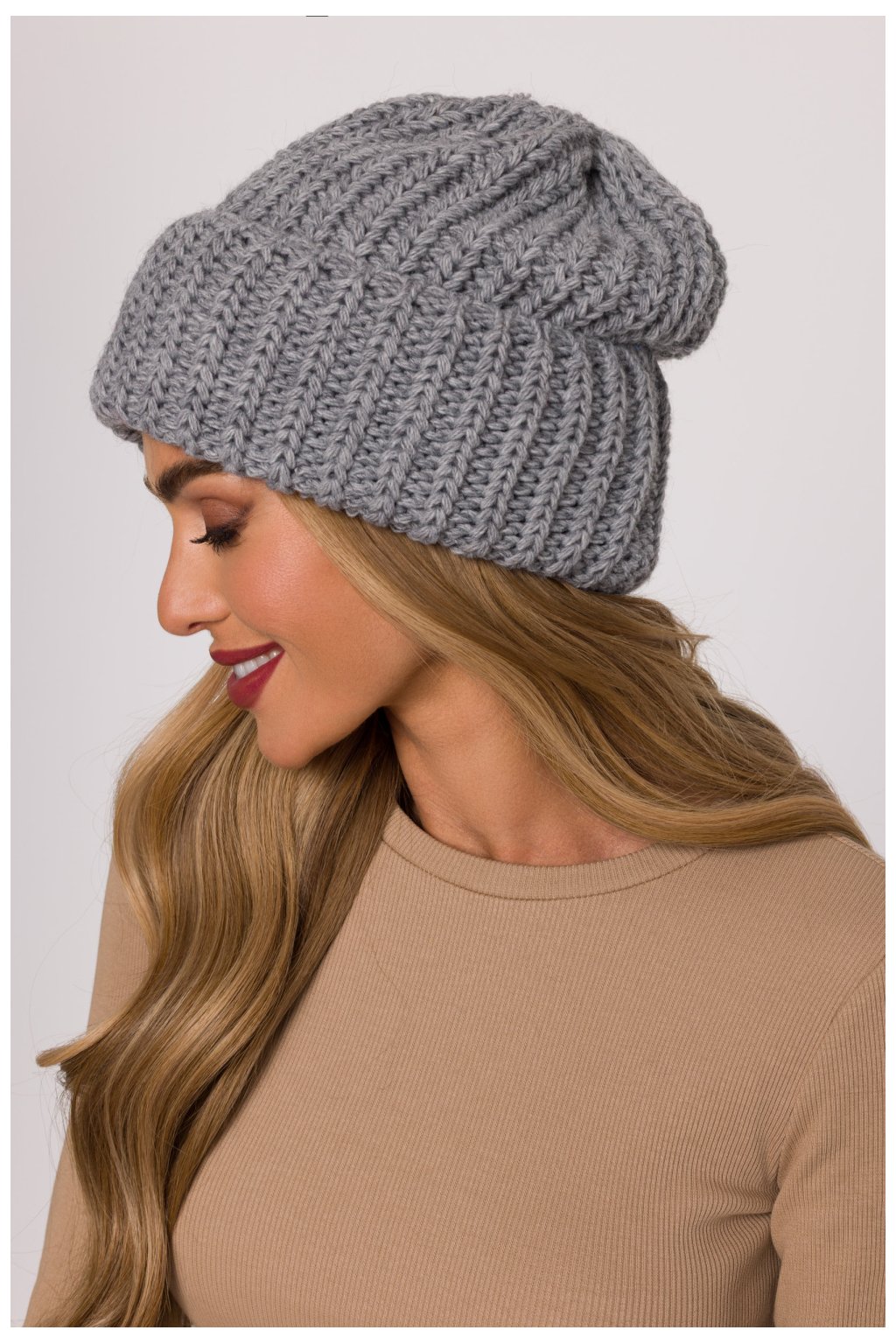 Teplá čepice vyrobená z měkké příze s hrubým, pruhovaným vzorem. Má jednoduchý střih s trochou volnosti v horní části, co jí dodává volný, moderní vzhled. Ohnutý lem zajistí lepší přizpůsobení a dodatečnou vrstvu tepla, vytvářejíc ideální spojení stylu a pohodlí.