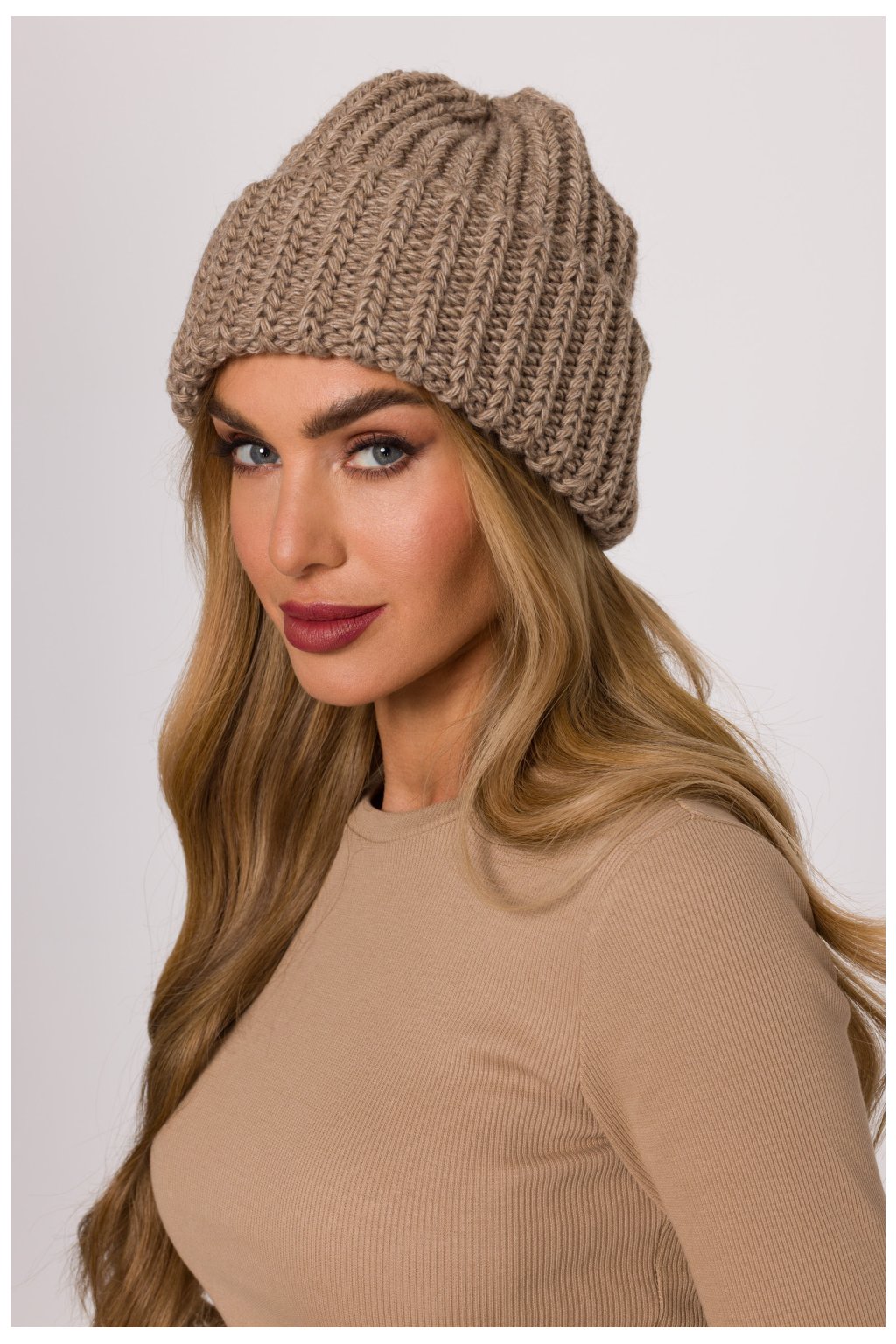 Teplá čepice vyrobena z měkké příze s tlustým, pruhovaným vzorem. Má jednoduchý střih s trochou volnosti v horní části, co jí dodává volný, moderní vzhled. Ohrnutý lem zajistí lepší přiléhání a dodatečnou vrstvu tepla, vytvářející ideální kombinaci stylu a pohodlí.
