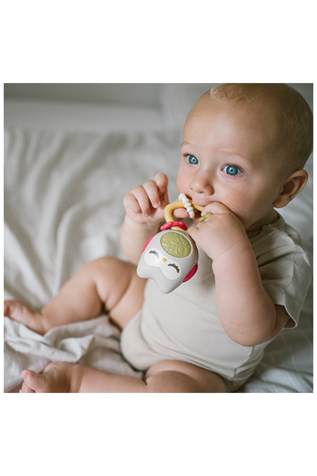 Chrastítko, kousátko pro miminko se zvukem, Sovička - pastel
