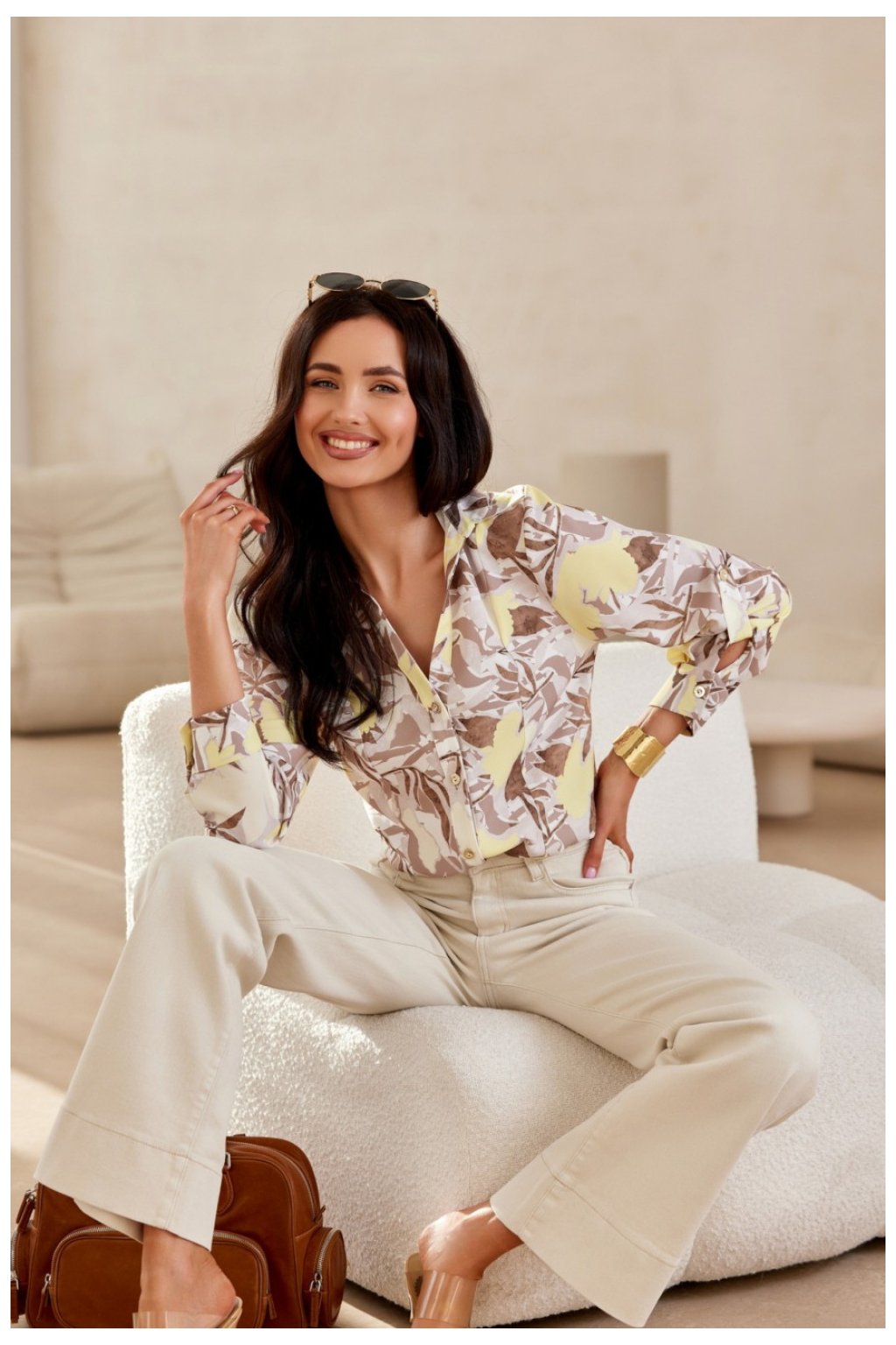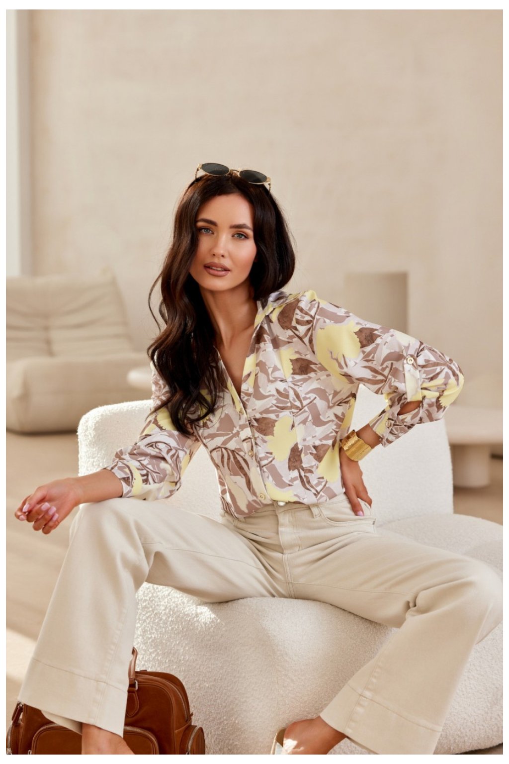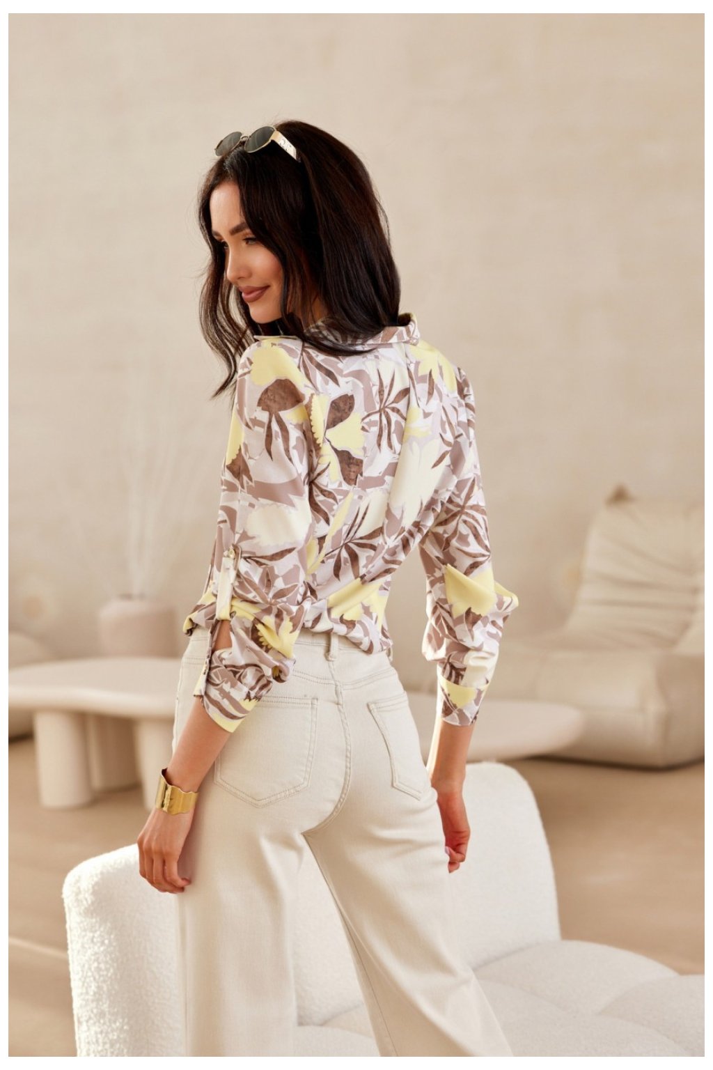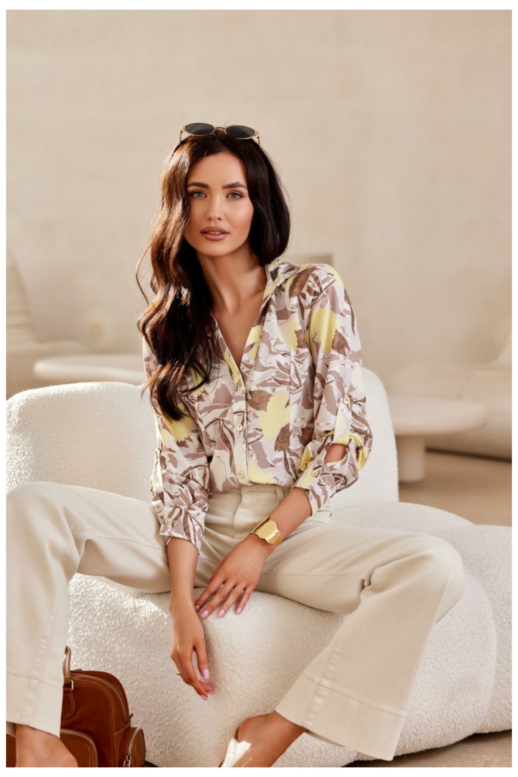 Košile s klasickým střihem a límečkem má podvinuté rukávy 3/4 zapínající se na knoflíky s manžetami. Košile s výstřihem ve tvaru V, který vhodně zdůrazní oblast dekoltu a díky tomu se budete cítit žensky s dodržením elegance. Zapíná se vpředu na drobné knoflíky. Skvělá základna pro mnoho stylizací, k vašim přizpůsobeným džínům, kalhotám s rozšířenými nohavicemi nebo elegantní sukní, která dodá celku charakter. Výrobek je vyroben a ušit v Polsku.