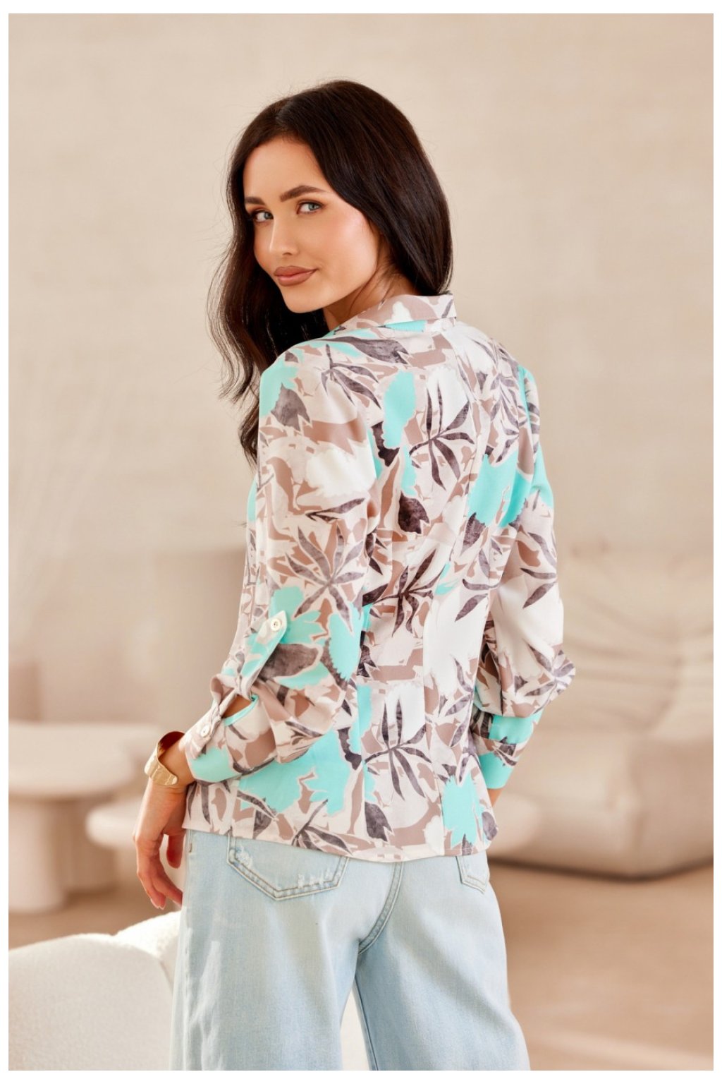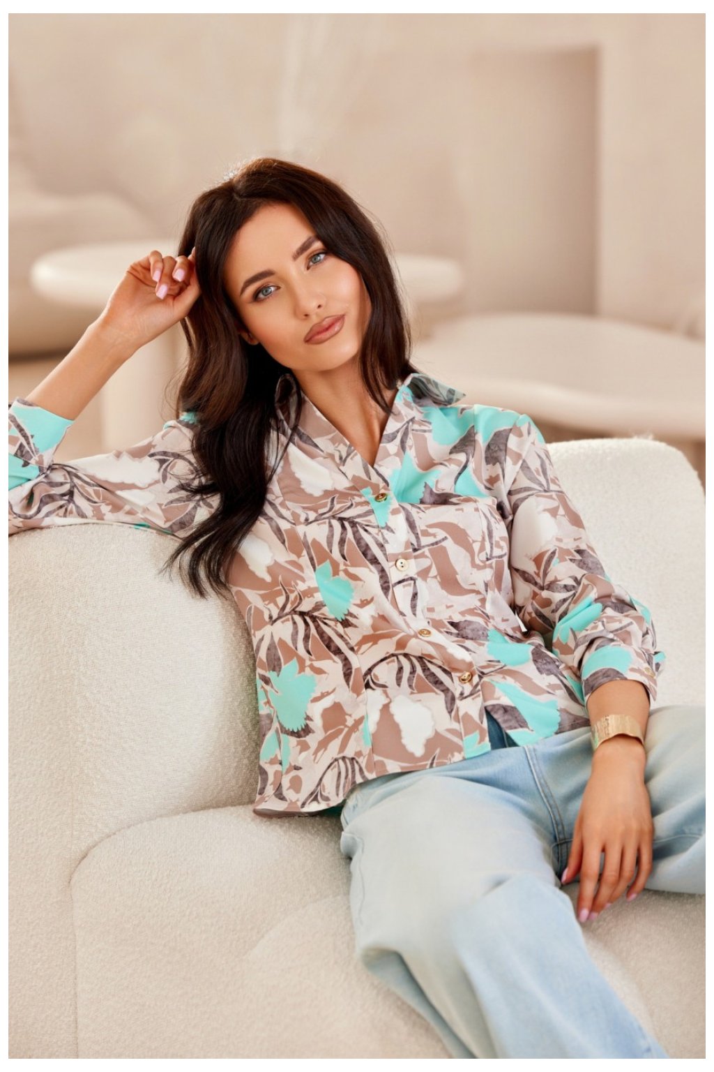 Halena s klasickým střihem a límečkem má podvinuté rukávy 3/4 zapínající se na knoflíky s manžetami. Košile s výstřihem ve tvaru V, který elegantně zdůrazní vaši oblast, a vy se tak budete cítit žensky s dodržením elegance. Zapíná se na přední straně na drobné knoflíky. Skvělý základ pro mnoho stylizací, ke vašim přiléhavým džínům, kalhotám s rozšiřujícími se nohavicemi nebo elegantní sukní, která dodá celku charakter. Výrobek je vyroben a ušit v Polsku.