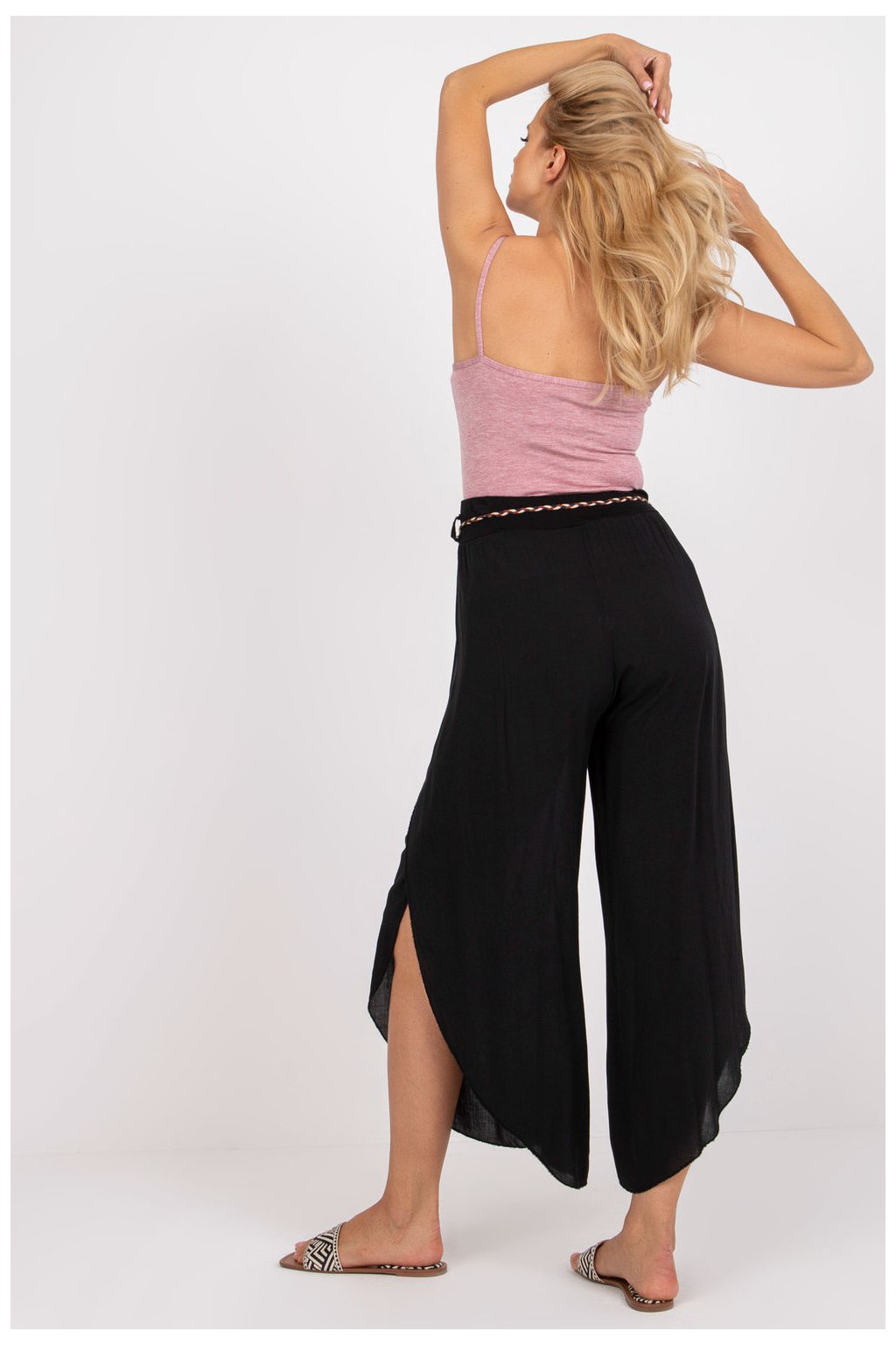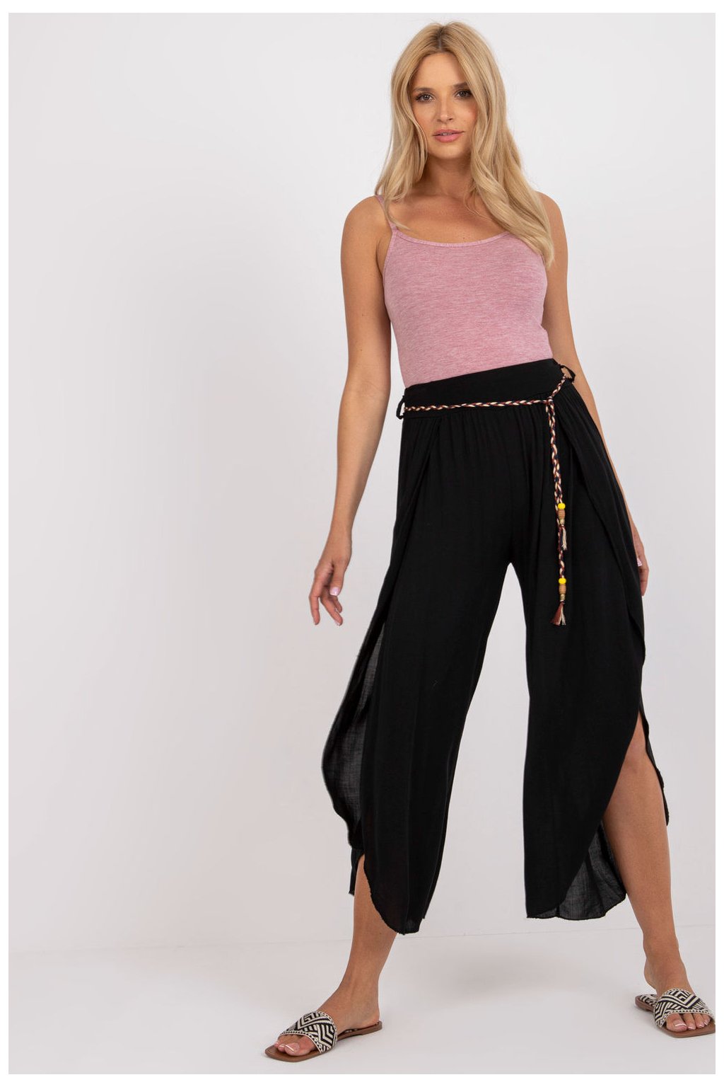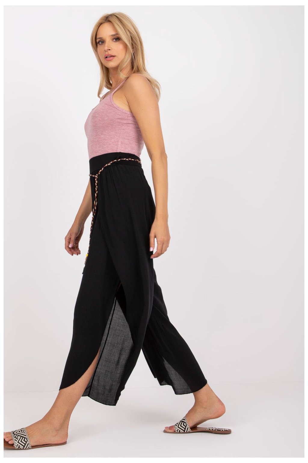 Vzdušné dámské kalhoty s vysokým sedem a ozdobným zavazováním v pase.