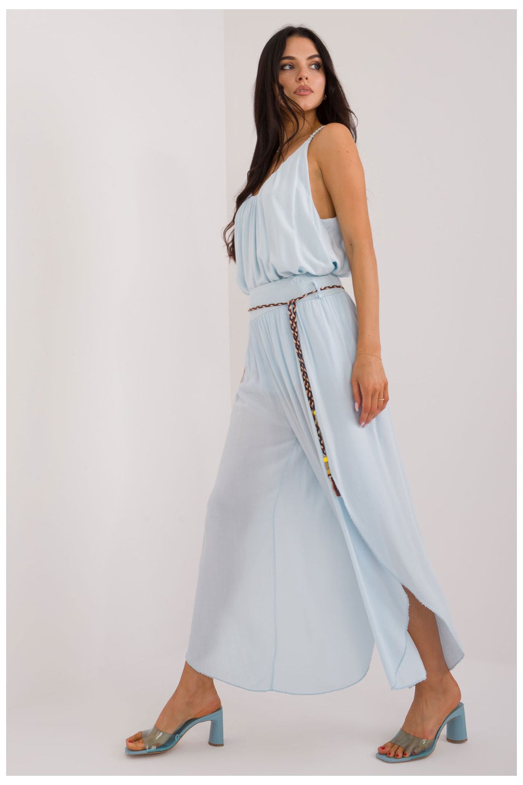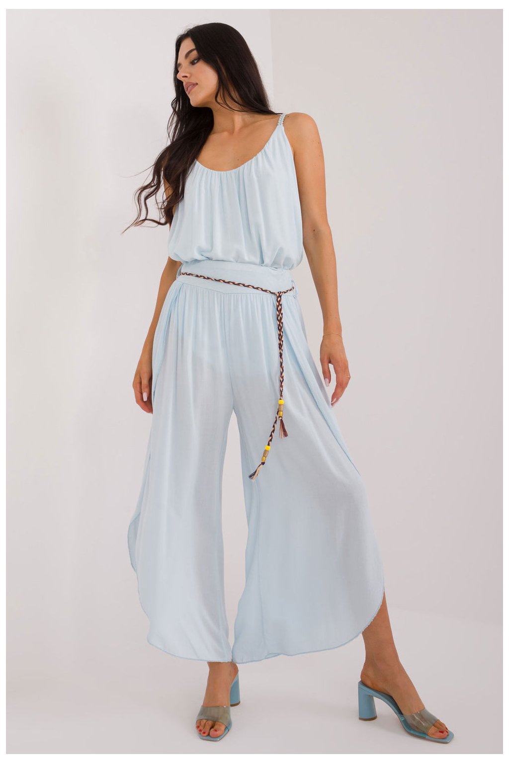 Kalhoty s švédskými švy jsou skvělou volbou pro každodenní styling. Vyrobené z hladkého materiálu s vysokým pasem, který zdůrazňuje pas a zajišťuje pohodlí při nošení. Jejich široké nohavice s rozparkem dodávají lehkost a volnost pohybům. Kalhoty mají šňůrku v pase, umožňující ideální přizpůsobení postavě. Vyznačují se minimalistickým designem bez kapes, co jim dodává eleganci a jednoduchost. Ideální na neformální setkání a do každodenního nošení, švédské kalhoty v boho stylu jsou pohodlným a trendovým prvkem šatníku.