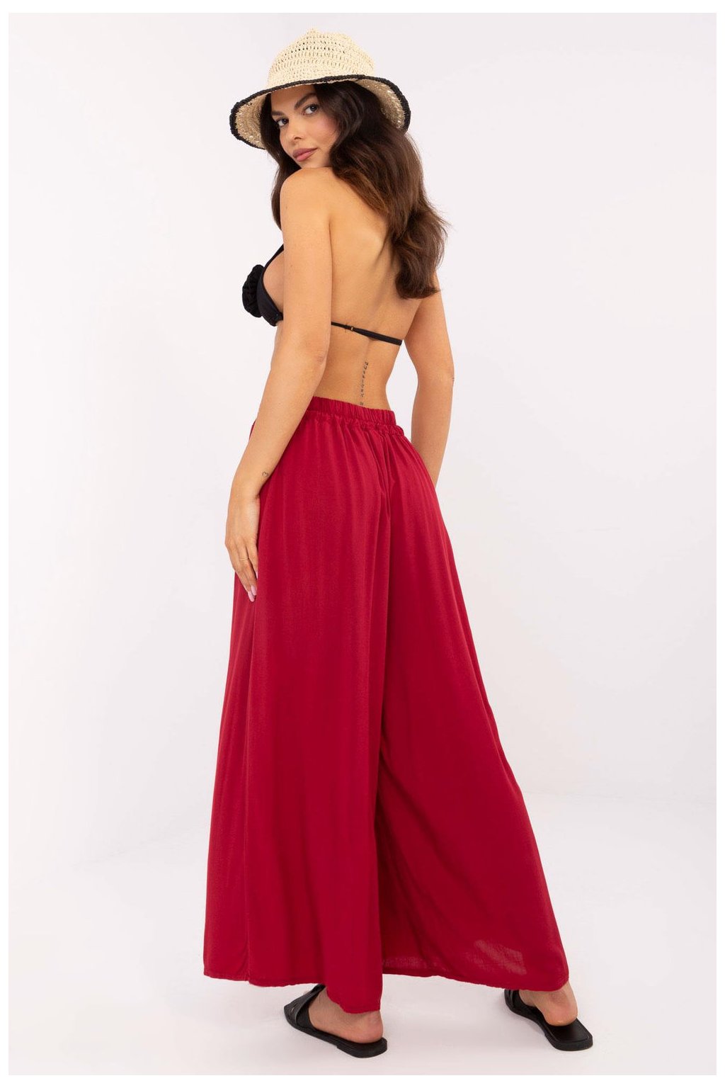 Dámské látkové kalhoty typu švédské, ideální na každodenní nošení v ležérním stylu. Vyrobené z lehké a prodyšné viskózy, poskytují pohodlí a volnost pohybu. Široké nohavice jim dodávají elegantní a zároveň uvolněný charakter. Vysoký pas zdůrazňuje pas, elastický pás zaručuje pohodlné přizpůsobení. Hladký materiál dělá kalhoty univerzální a snadné na styling. Skvělá volba pro ženy, které oceňují pohodlí a stylový vzhled.