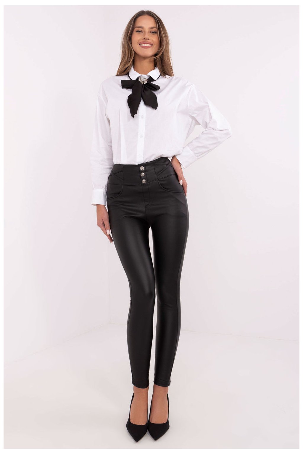 Dámské rourové kalhoty z ekokože jsou stylovým návrhem pro ženy, které ocení pohodlí a módní vzhled. Vyrobené z elastického materiálu, který kombinuje polyamid, elastan a polyester, skvěle padnou k postavě, zdůrazňují její přednosti. Hladký vzor a ležérní styl dělají tyto kalhoty skvělým doplňkem k každodenním outfitům. Vysoký pas zeštíhlí pas, a zužující nohavice dodávají elegantní, ženský charakter. Model nemá klasické zapínání, což zvyšuje pohodlí nošení, a otevřené kapsy dodávají funkčnost. Zateplení zase zajišťuje, že kalhoty perfektně poslouží v chladnějších dnech, a ozdobné knoflíky na přední straně jim dodávají výjimečný styl.