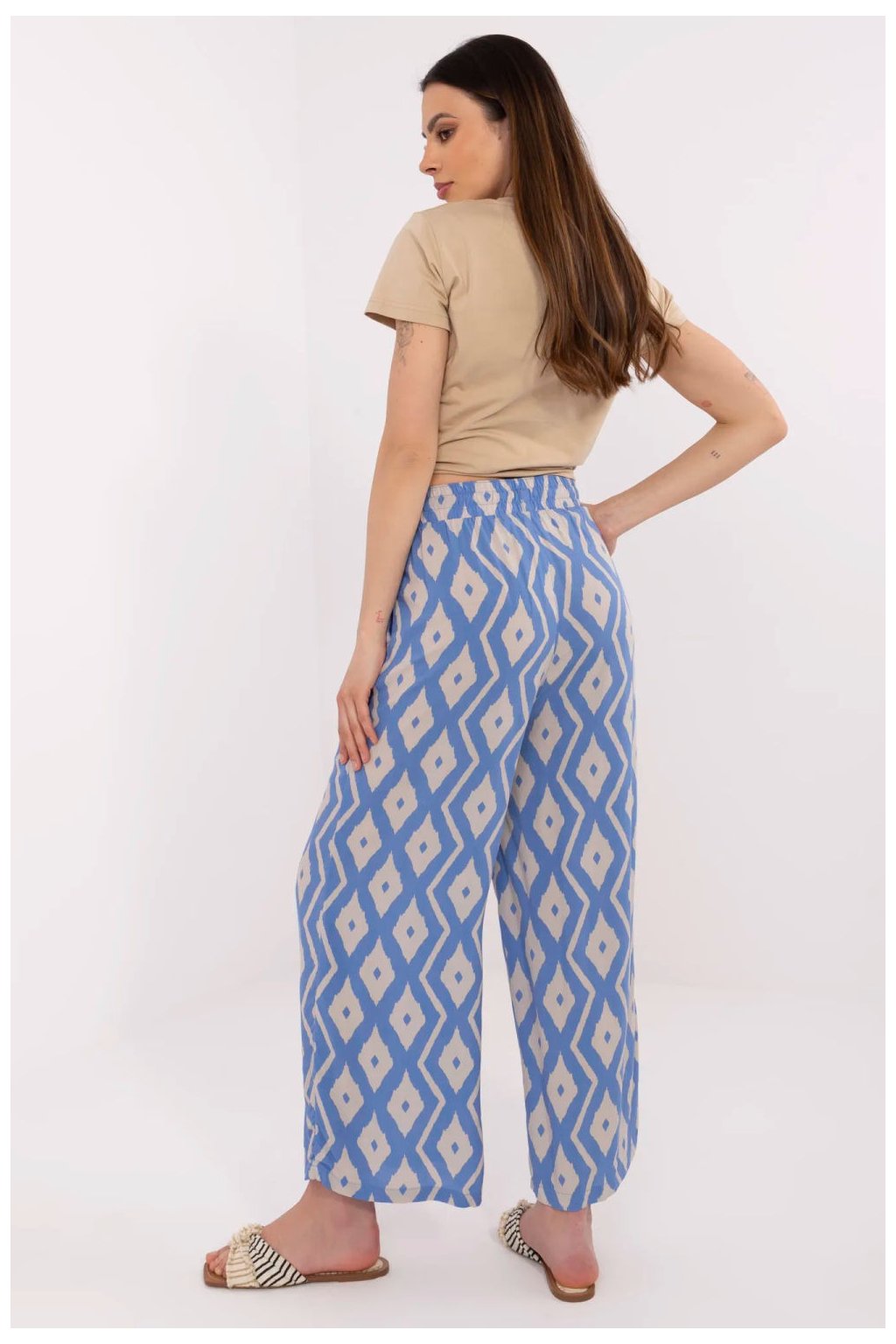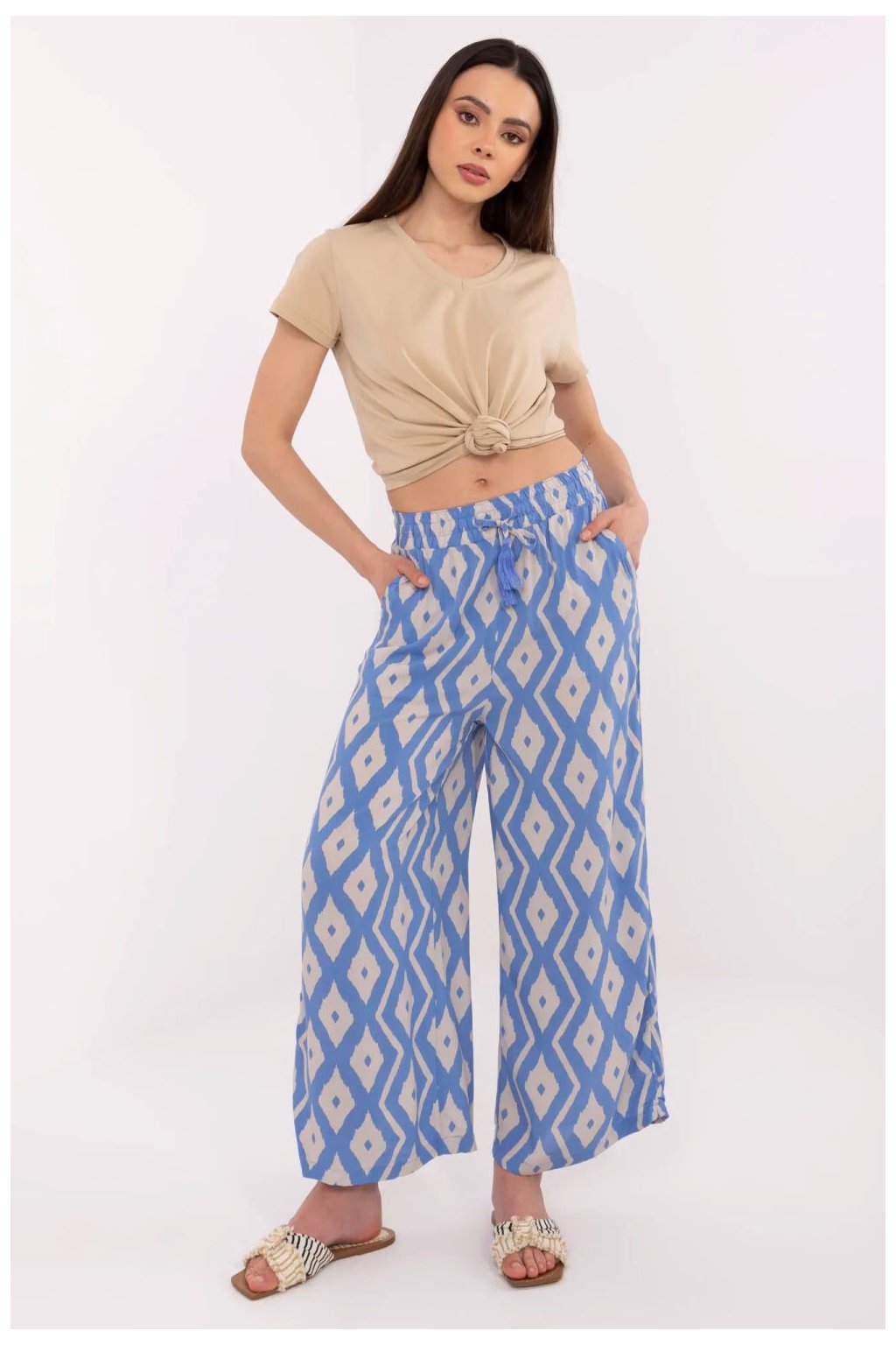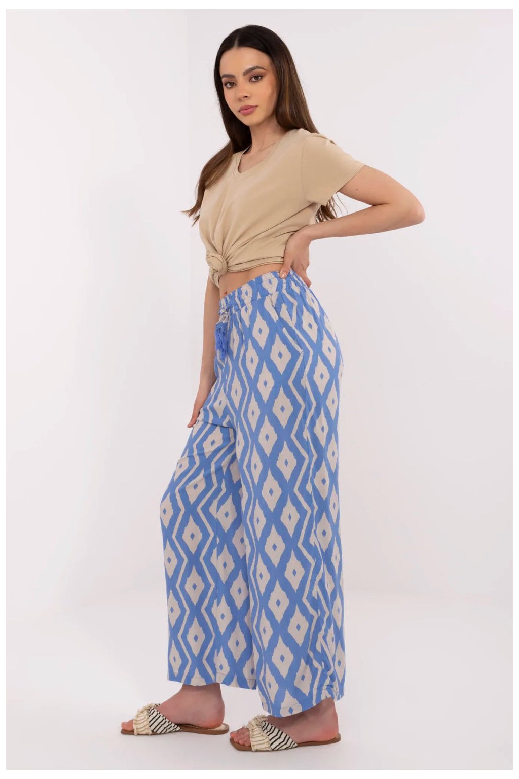 Lehké a pohodlné dámské kalhoty s casualovým charakterem jsou ideální volbou pro každodenní stylizace. Vyrobené z prodyšné, příjemné kůži vstřícné viskózy, patřící do kategorie ekologického oblečení, spojují pohodlí nošení s péčí o životní prostředí. Vysoký pas a vázání v pase zajistí skvělé přizpůsobení a zdůrazní pas, zatímco široké nohavice dodají siluetě lehkost. Dekorativní potisk dodává charakter a boční kapsy zvyšují funkčnost. Jedná se o skvělý návrh pro ženy, které si váží stylu, pohodlí a uvědomělých výběrů.