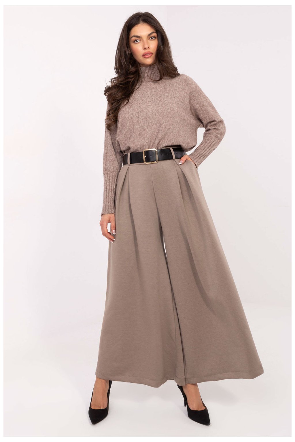 Elegantní dámské kalhoty typu palazzo, skvělé na každý den i do práce. Vyrobena z kombinace viskózy a polyesteru, vynikají hladkou strukturou a pohodlností nošení. Vysoký pas s vsazenou gumou a zapínacím páskem zdůrazňuje pas, a ozdobné záhyby dodávají celku eleganci. Široké nohavice dodávají lehkost siluetě, a praktické boční kapsy zajistí funkčnost. Stylový návrh, který spojuje eleganci s pohodlím.