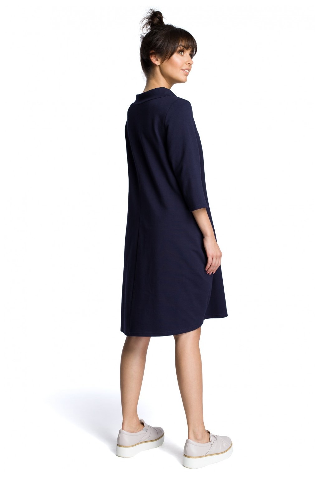 Šaty v délce ke kolenům s dlouhými rukávy a velkými lemovanými klopami ve výstřihu. Model má v pase geometrickou kostici s rozparkem na zádech pro…