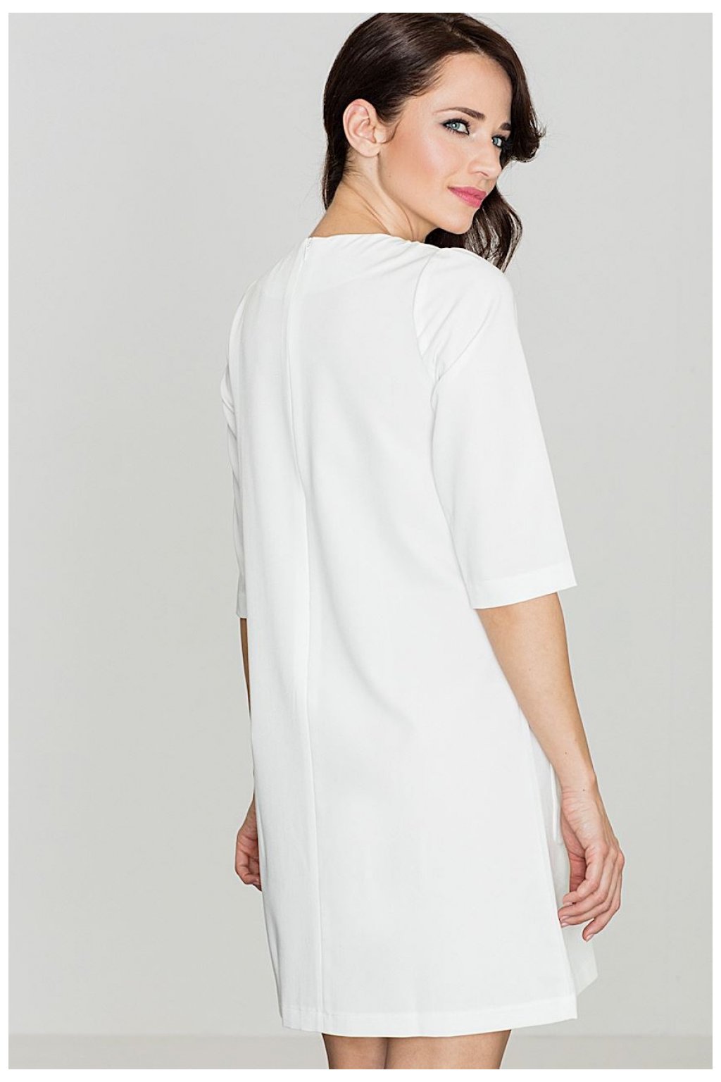Okouzlující šaty s 3/4 rukávy a páskem v pase. V barvě ecru.