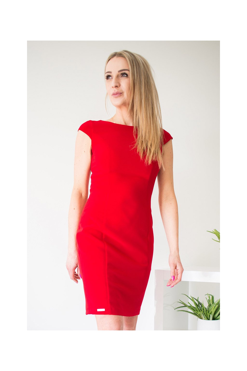 Šaty Margaret s rozšířenými rukávy a krajkovou vsadkou, velmi pohodlné, červené. Značka numoco. Vyrobeno v Polsku.