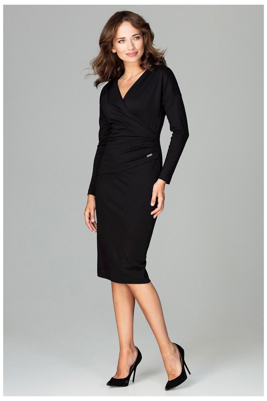 Šaty v délce 7/8 s dlouhými rukávy. Model s překrývajícím se srdíčkovým výstřihem a řasením pod prsy. Velmi pěkně zvýrazňuje a modeluje ženskou siluetu.Polyester 30 %
