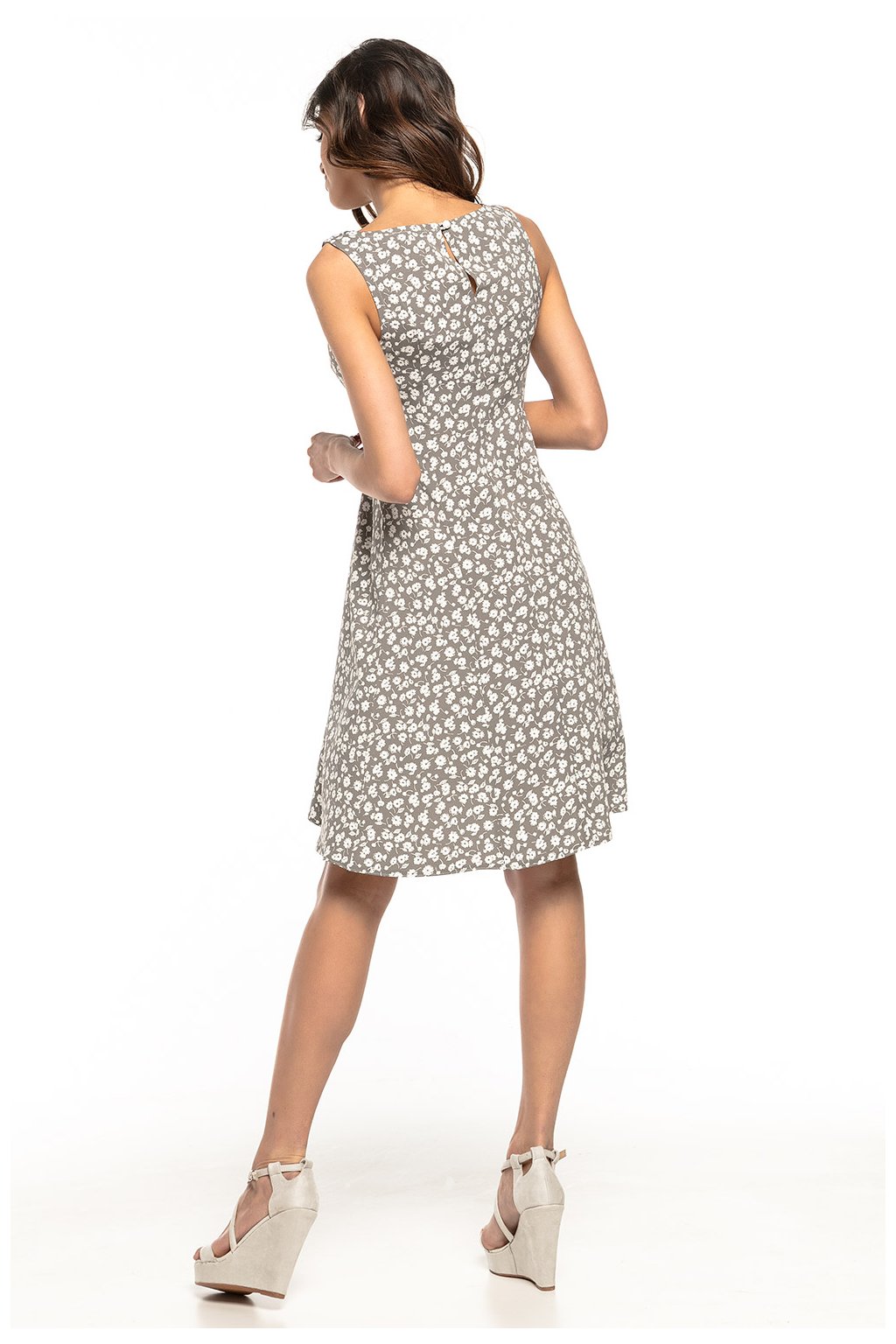 Elegantní šaty vázané z vysoce kvalitní látky s jemným květinovým vzorem. Šaty lze uvázat volně nebo na mašli vpředu i vzadu. Od prsou se šaty směrem dolů rozšiřují. U krku je zapínání na ozdobný knoflík. Dokonale zakryje nedokonalosti postavy a zároveň zdůrazní ženské přednosti. Naše povinná výbava pro letní výlety!Velikost | Délka | Obvod beder | Obvod prsou | Obvod v pase |