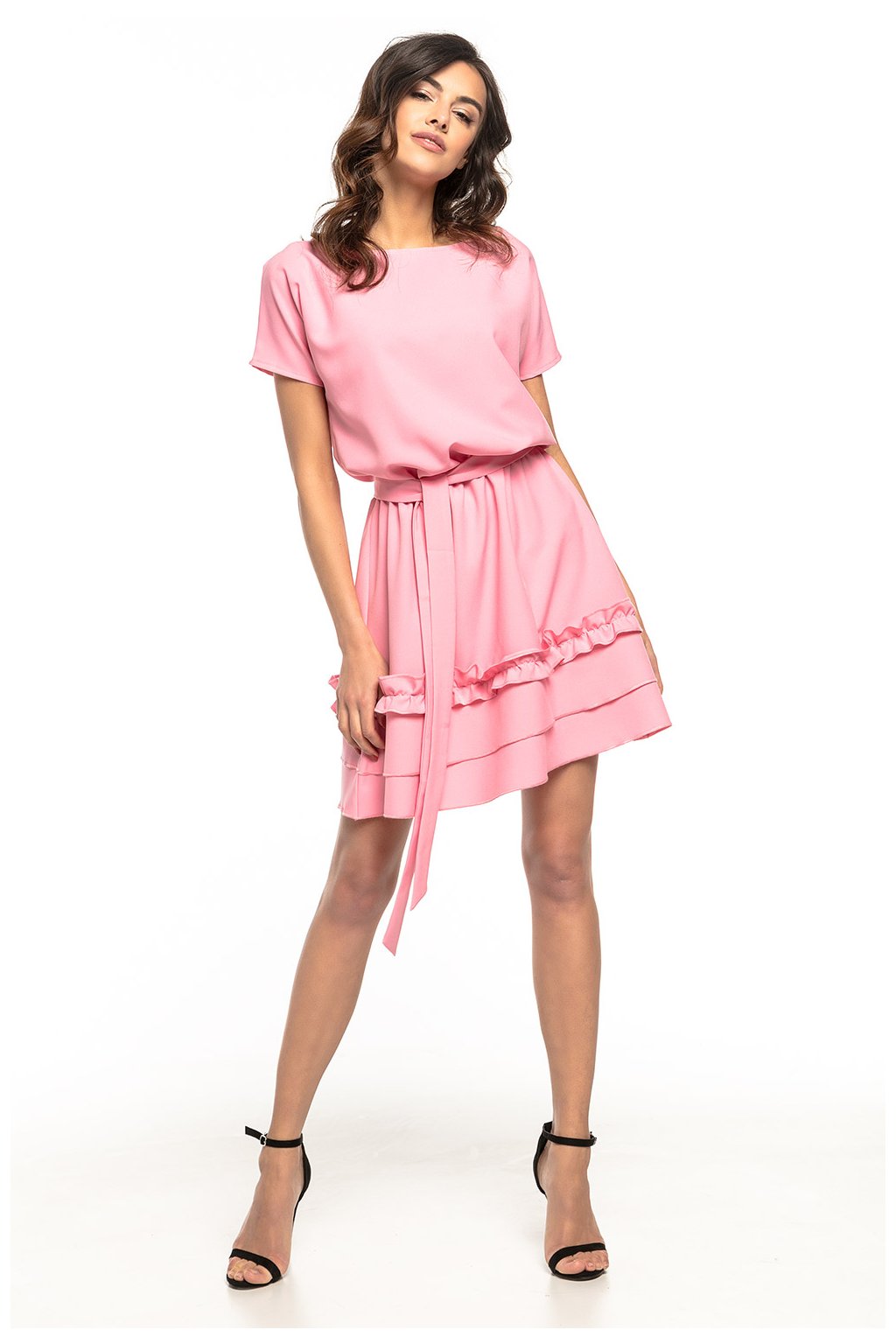 Elegantní šaty s 3/4 rukávy a volánky. Model působí nádherně a expresivně. Jednoduchý, originální tvar obepíná siluetu a dodává jí romantiku.