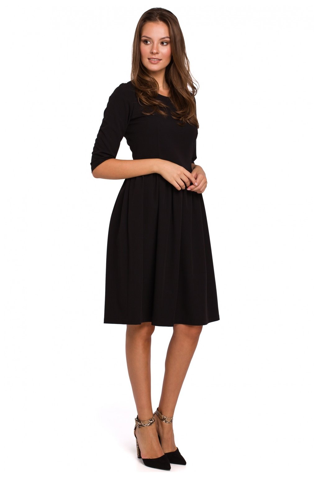 Rozšířené midi šaty pro milovnice klasických střihů. Vrchní část šatů je opatřena záševky a rozšířená spodní část vypadá při pohybu hezky. Šaty se zapínají na skrytý zip. Klasický, velmi ženský návrh pro ženy, které rády vypadají elegantně v každé situaci!Polyester 75 %