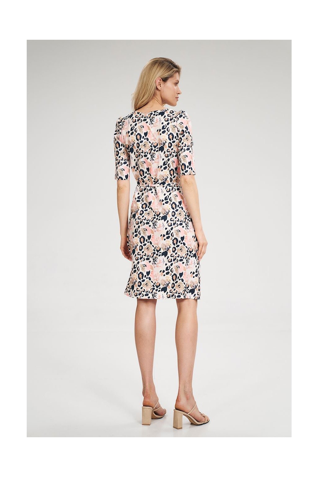 Elegantní šaty v odstínu pudrově růžové barvy s krojem A-line, který jemně zdůrazňuje postavu. Dekorativní, krátké rukávy s výstřihy dodávají lehkost…
