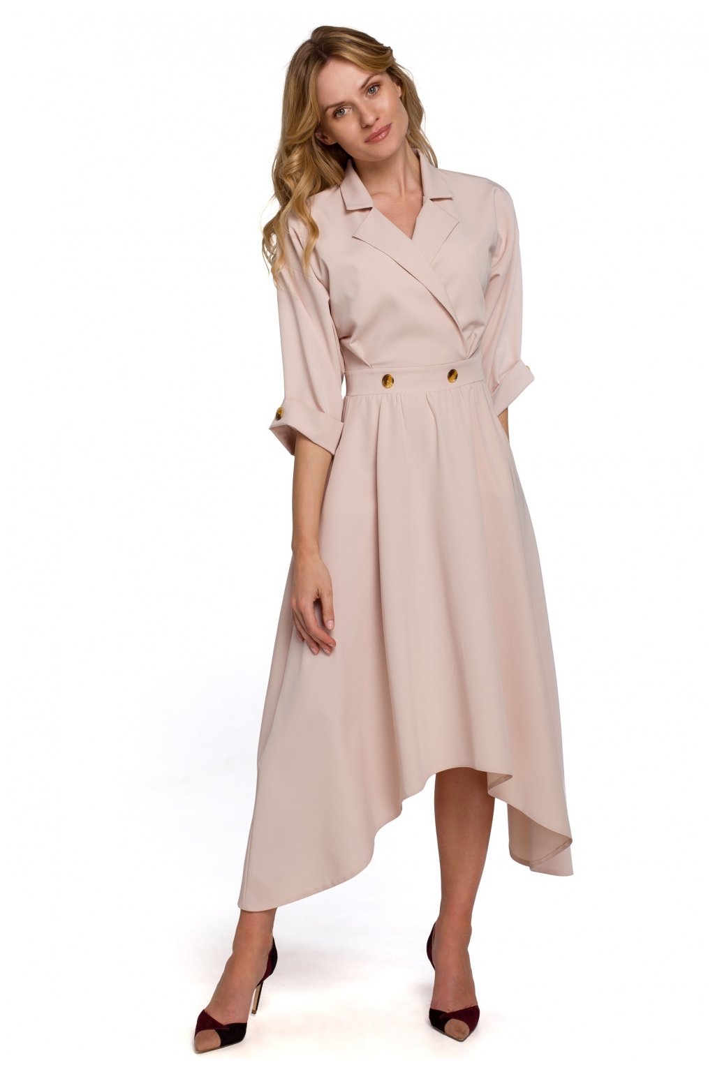 Šaty, které vás nenechají bez povšimnutí. Obálkový top s límečkem a objemný, asymetrický spodní díl vypadají skvěle, když se hýbete. Křídové knoflíky na manžetách a v pase jsou jen detaily, které vytvářejí moderní městský elegantní vzhled. Šaty se zapínají na skrytý zip.Polyester 75 %