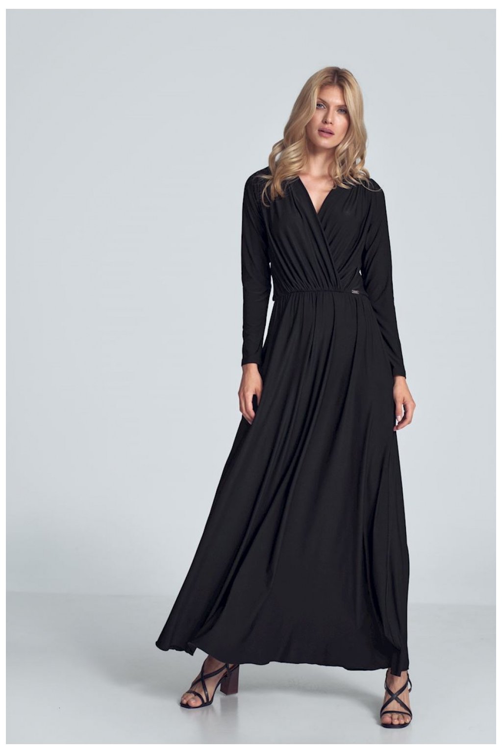 Elegantní šaty s 3/4 rukávy a volánky. Model působí nádherně a expresivně. Jednoduchý, originální tvar obepíná siluetu a dodává jí romantiku.