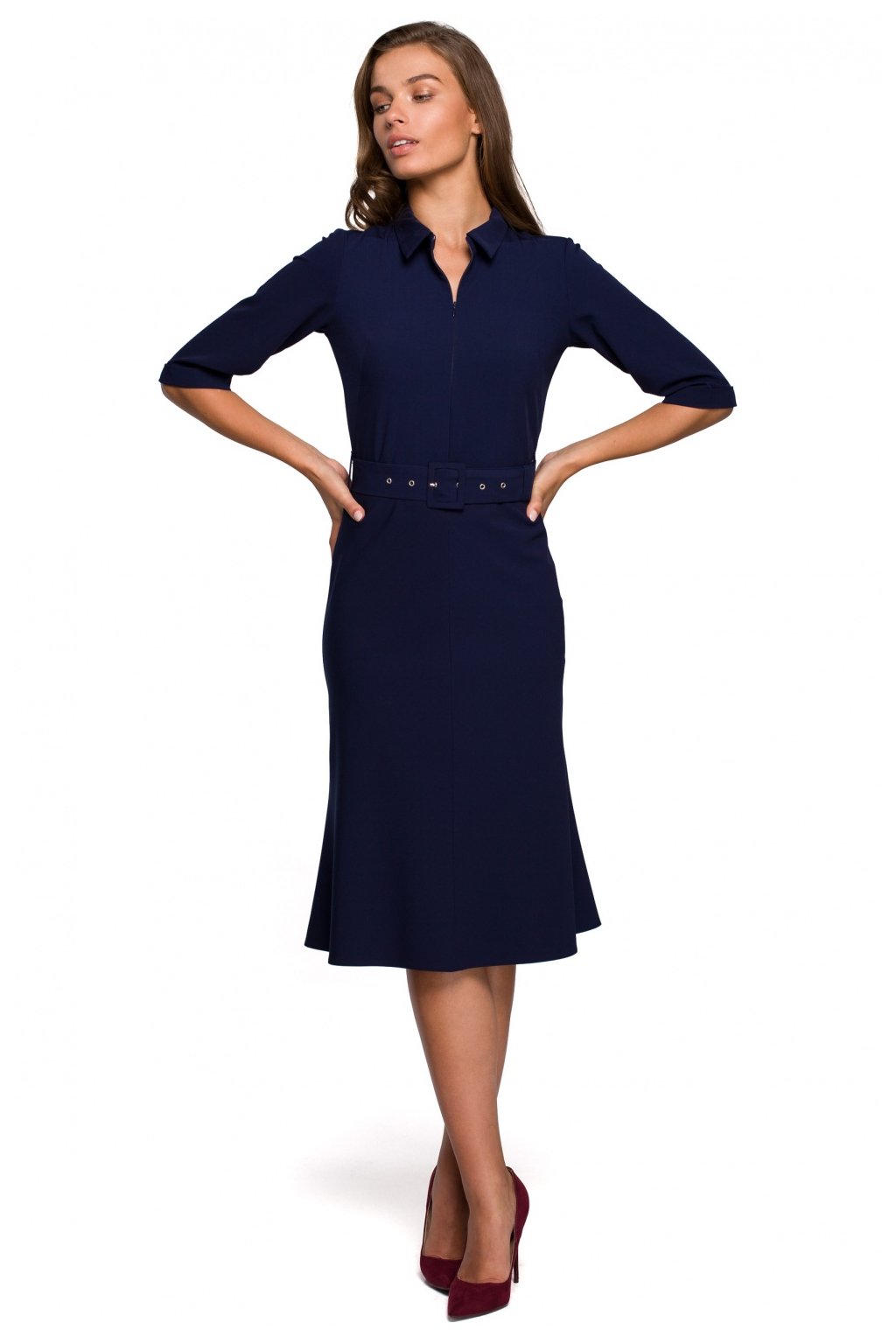 Klasická hladká tkanina, výrazně vyznačený pas s páskem s krytou sponou a límec podtrhují eleganci designu. Jemný výstřih s krytým zipem umožňuje změnit charakter šatů jediným pohybem. Velmi stylové!Polyester 65 %