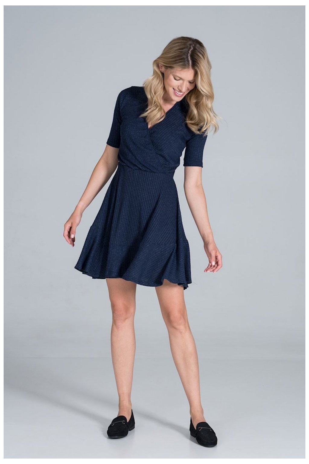 Parádní model volných šatů svázaných v pase. Delší záda a volánek ve výstřihu zdůrazňují ženské tvary. Boční rozparky pro elegantní a šik vzhled.
