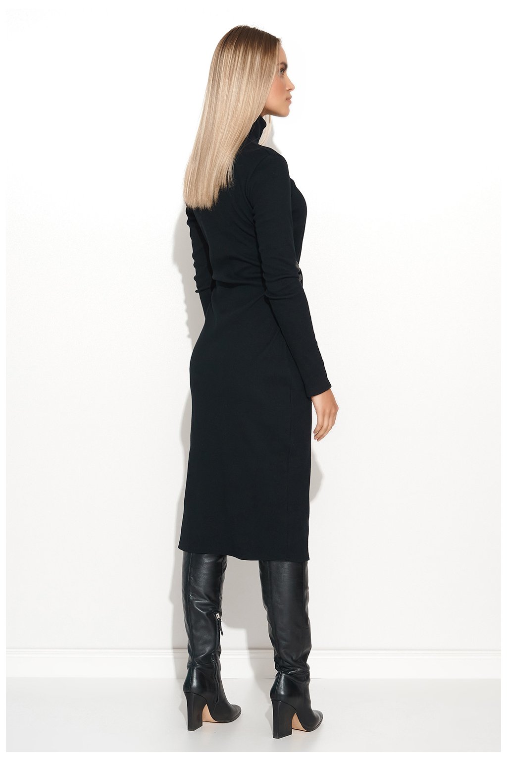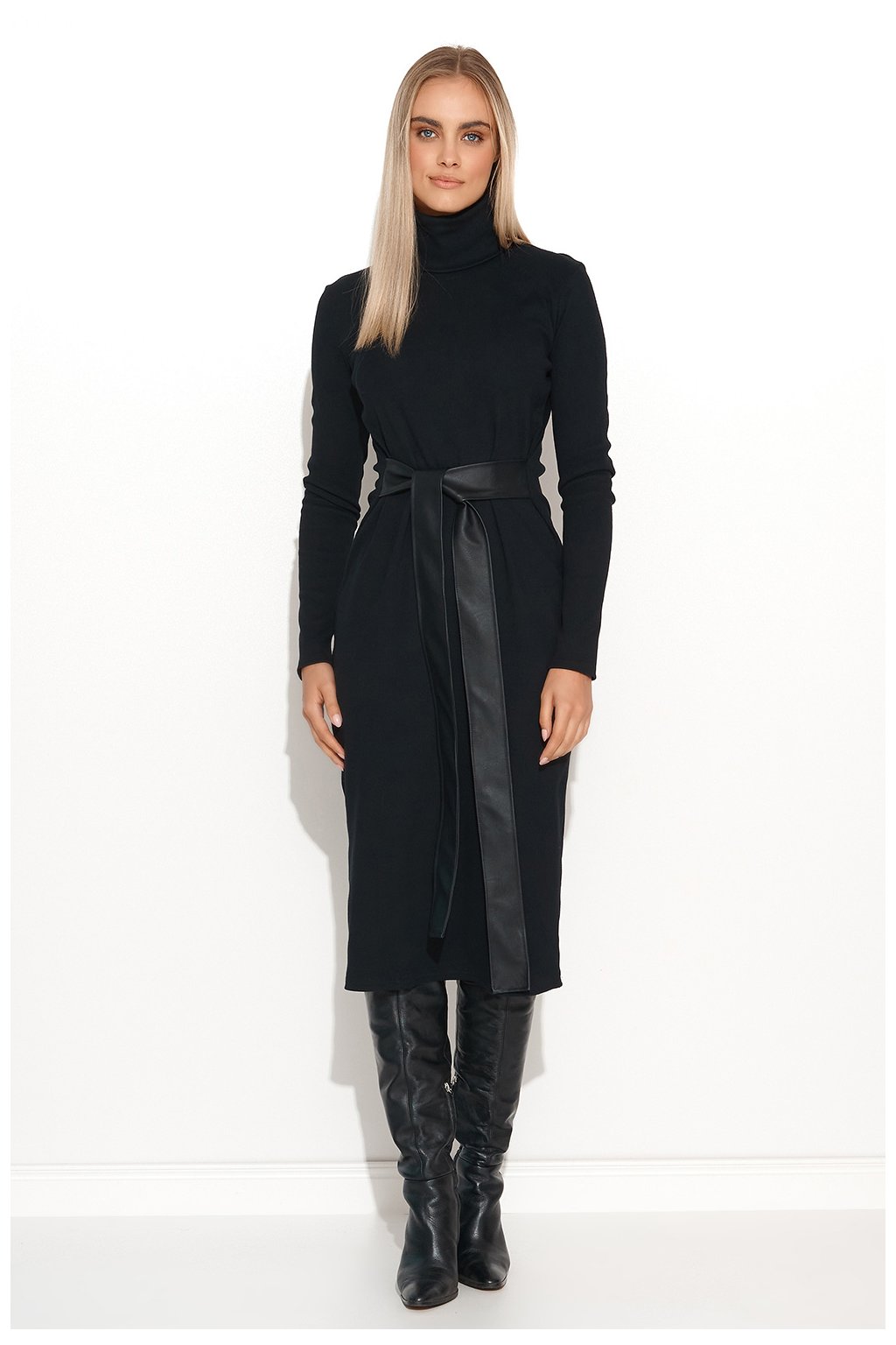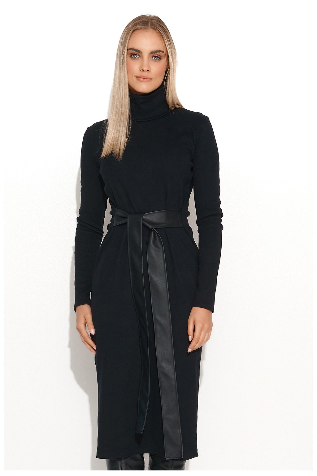 Šaty v délce ke kolenům z velmi módního žebrovaného úpletu. Proč ho musíte mít? Protože je to nesmírně pohodlný a univerzální kousek, který lze stylizovat na milion různých způsobů. Šaty mají dlouhé rovné rukávy a rolák. Na bocích má všité dva pásky z ekokůže, které můžete svázat do nonšalantního uzlu nebo mašle. Záleží jen na vás, zda se v těchto šatech projeví elegantní, nebo ležérní stránka. Noste je tak, jak vám to vyhovuje, a vždy se ciťte pohodlně. Můžete je mít všechny.Elastan 5 %