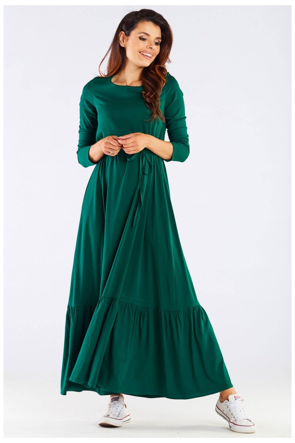 Dlouhé šaty z velmi příjemné a přírodní viskózy. Volánek na konci mu dodává dívčí půvab. Přídavný pásek umožňuje přizpůsobit se postavě. V kimonu se každá žena cítí pohodlně. Hodí se na večerní schůzky i na každodenní nošení. Vyrobeno v Polsku.Viskóza 97 %