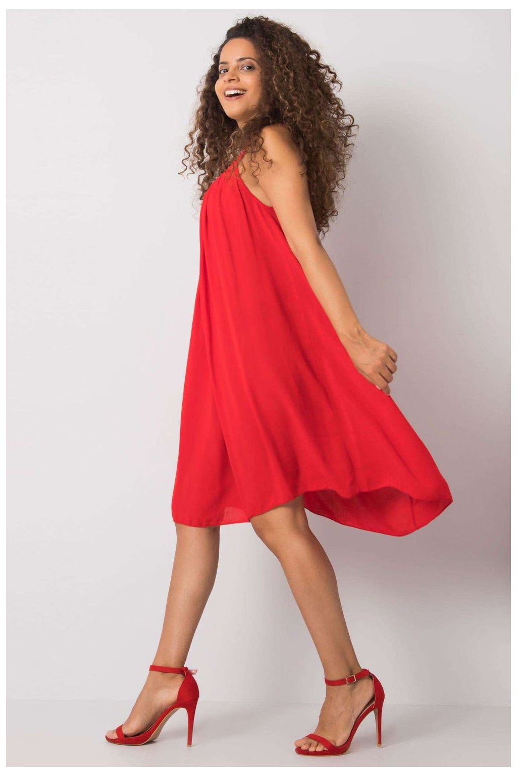 Elegantní, přiléhavé šaty bez rukávů vyrobené z vysoce kvalitní látky. Model okouzluje asymetrickým spodkem s dvěma volány, které dodávají lehkost a…