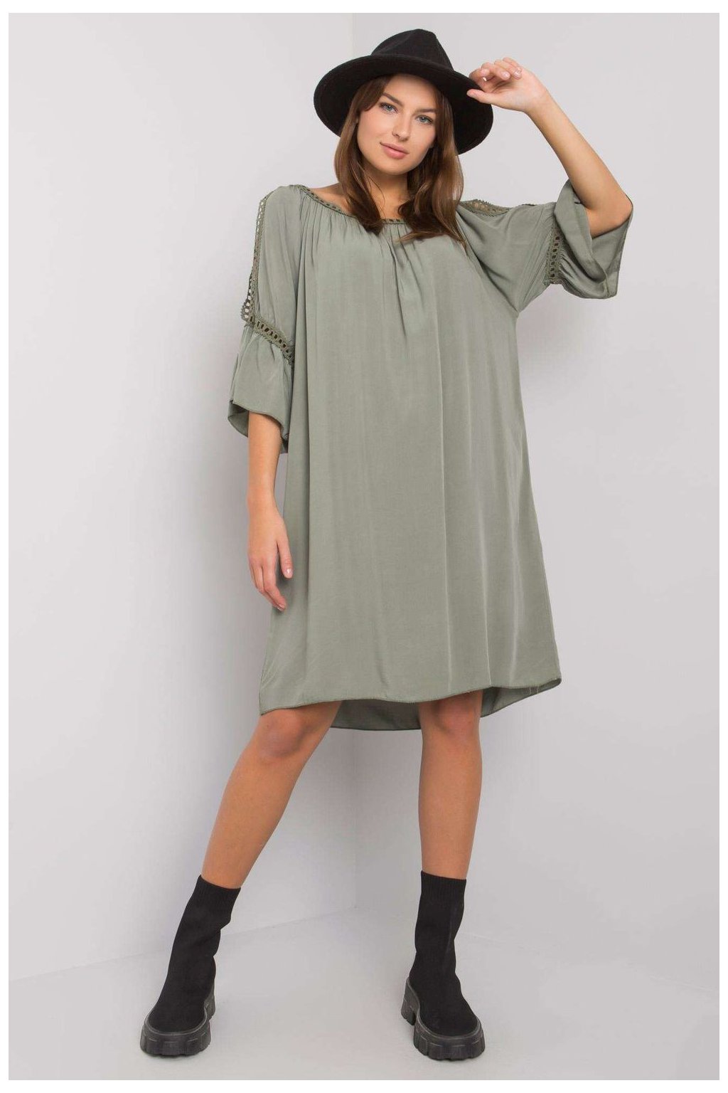 Elegantní rozkloszované šaty, které spojují eleganci s decentní ženskou grácií. Vyrobené z vysoce kvalitní směsi polyesteru a viskózy, jsou příjemné…