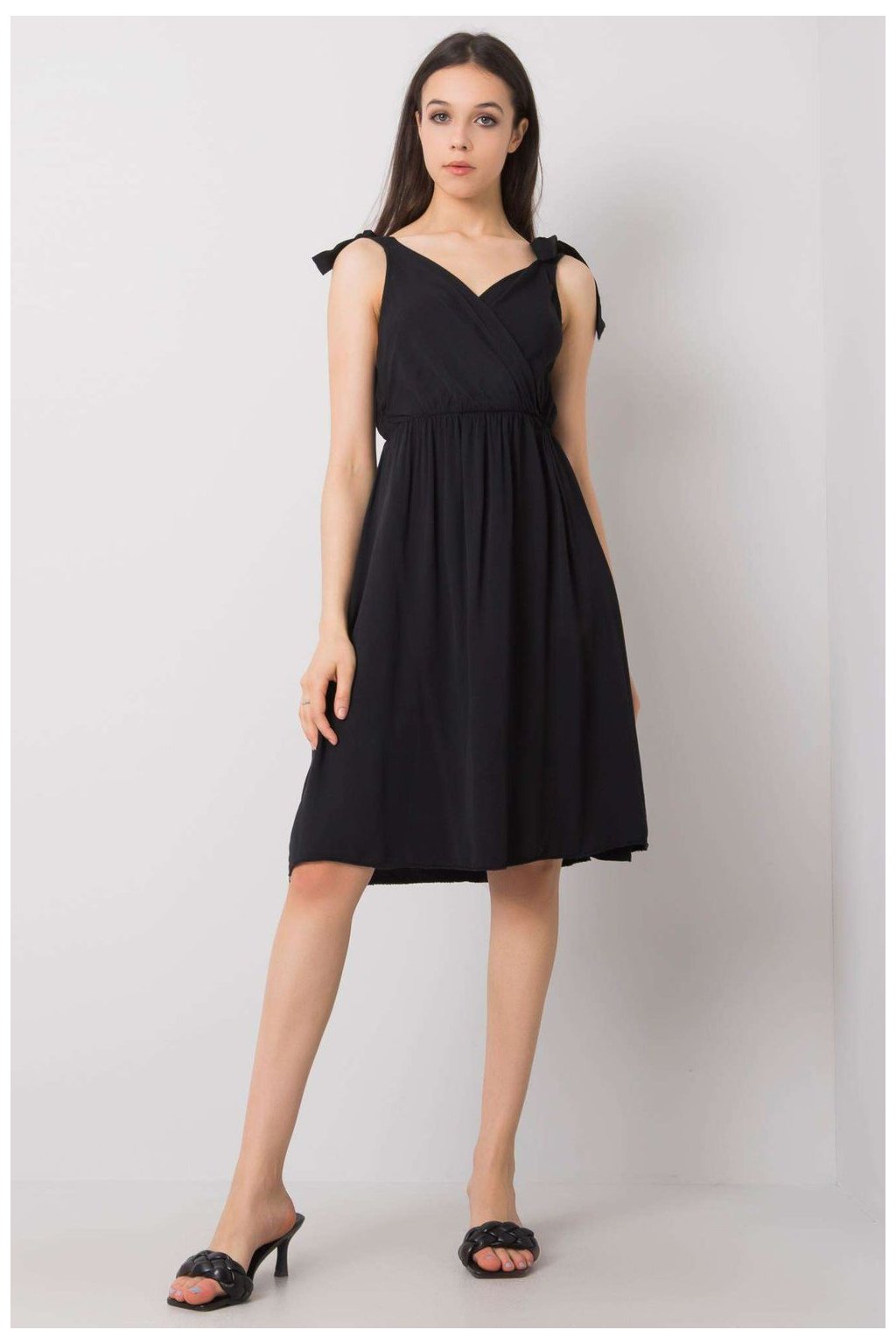 Koktejlové šaty s dlouhými rukávy a půlkruhovým výstřihem. Spodní část šatů je rovná s drapérií na levé nohavici. Šaty bez zapínání.