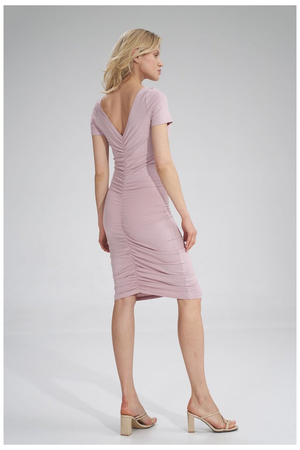 Parádní model volných šatů svázaných v pase. Delší záda a volánek ve výstřihu zdůrazňují ženské tvary. Boční rozparky pro elegantní a šik vzhled.
