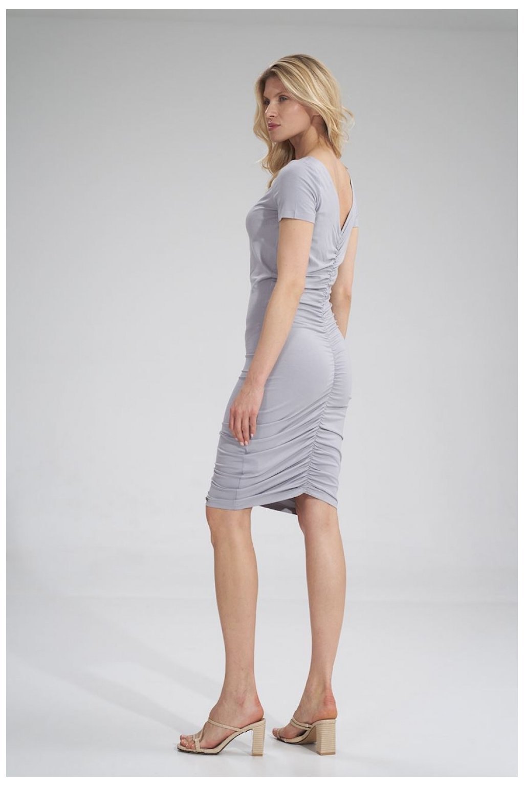 Elegantní šaty s 3/4 rukávy a volánky. Model působí nádherně a expresivně. Jednoduchý, originální tvar obepíná siluetu a dodává jí romantiku.