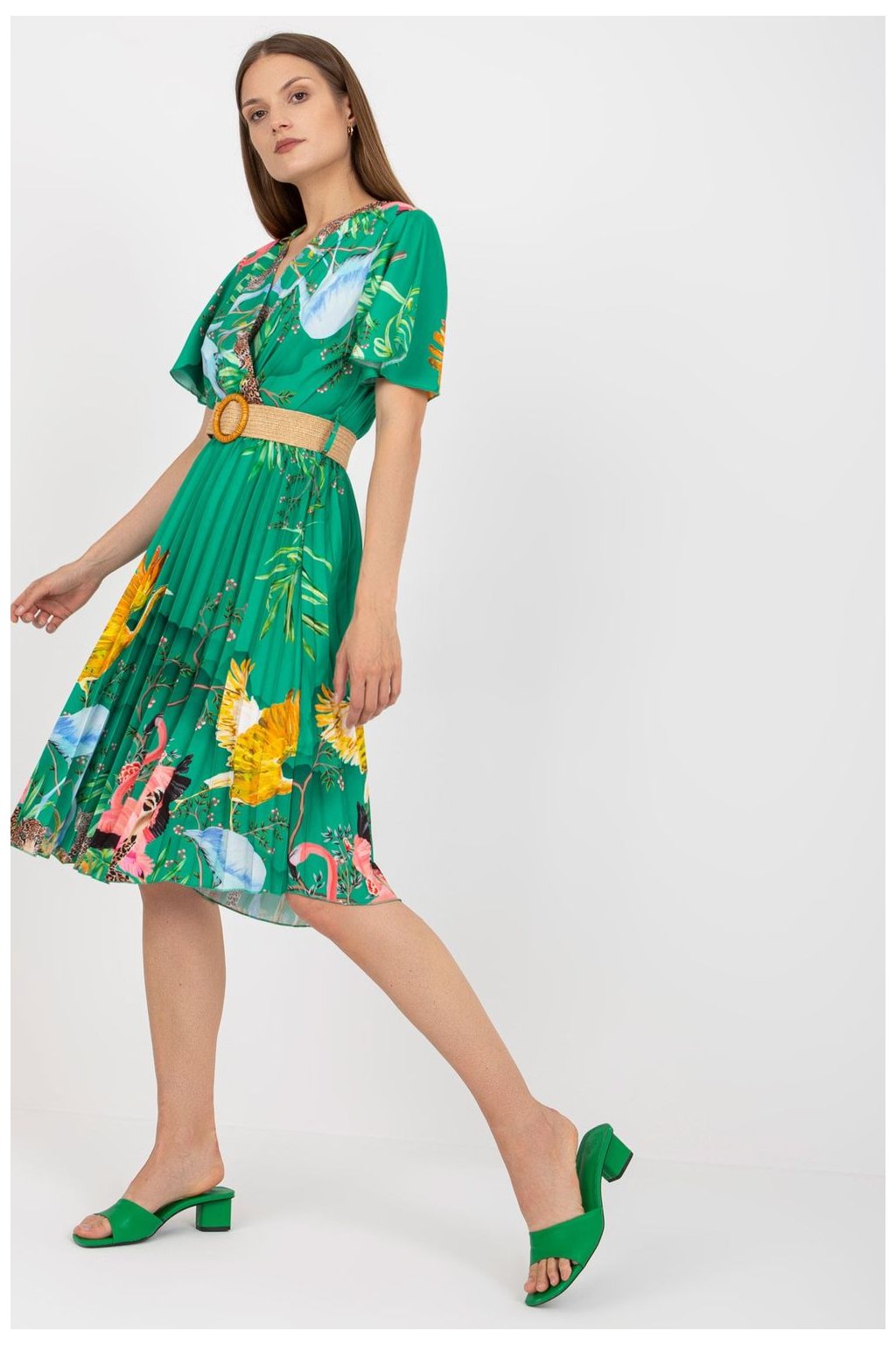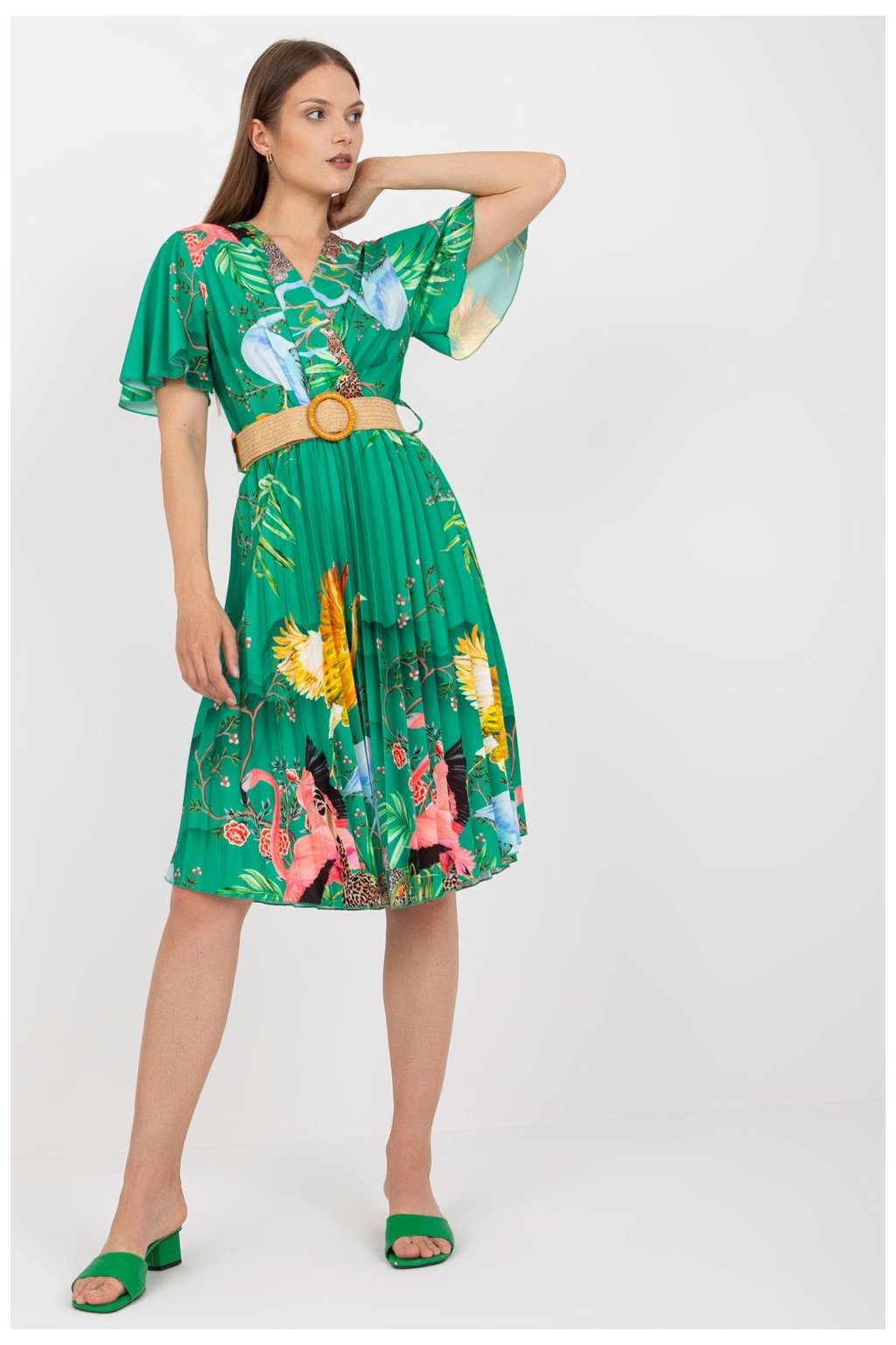 Letní šaty s krátkými rukávy, obálkovým výstřihem a rozšířenou spodní částí. Plisovaná spodní část šatů. Šaty s pleteným páskem jsou součástí balení. Skvěle se hodí pro mnoho příležitostí.Polyester 50 %