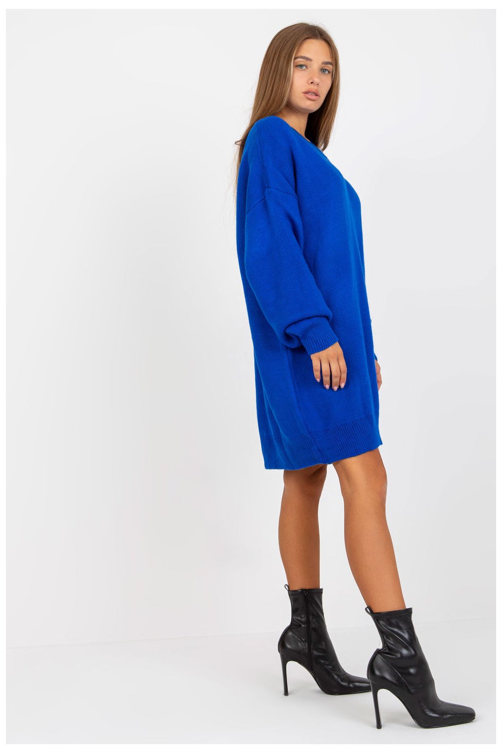 Plisované šifonové šaty s výstřihem a dlouhými rukávy. Chrpově modrá. Značka numoco. Vyrobeno v Polsku. Elastan