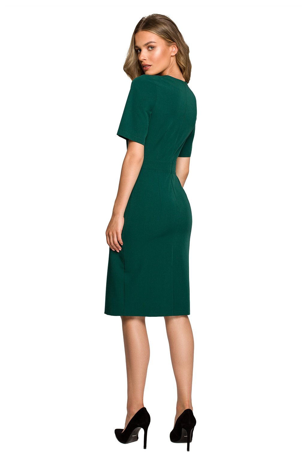 Elegantní a ženské šaty s přiléhavým střihem, ideální na elegantní události. Překládaný výstřih jemně zdůrazňuje poprsí, a rozkročné rukávy přidávají…