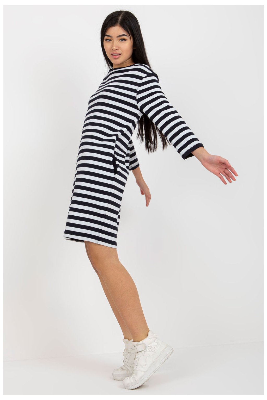 Jednoduché šaty s 3/4 rukávy zakončené volánem. Šaty mají zapínání na zip.