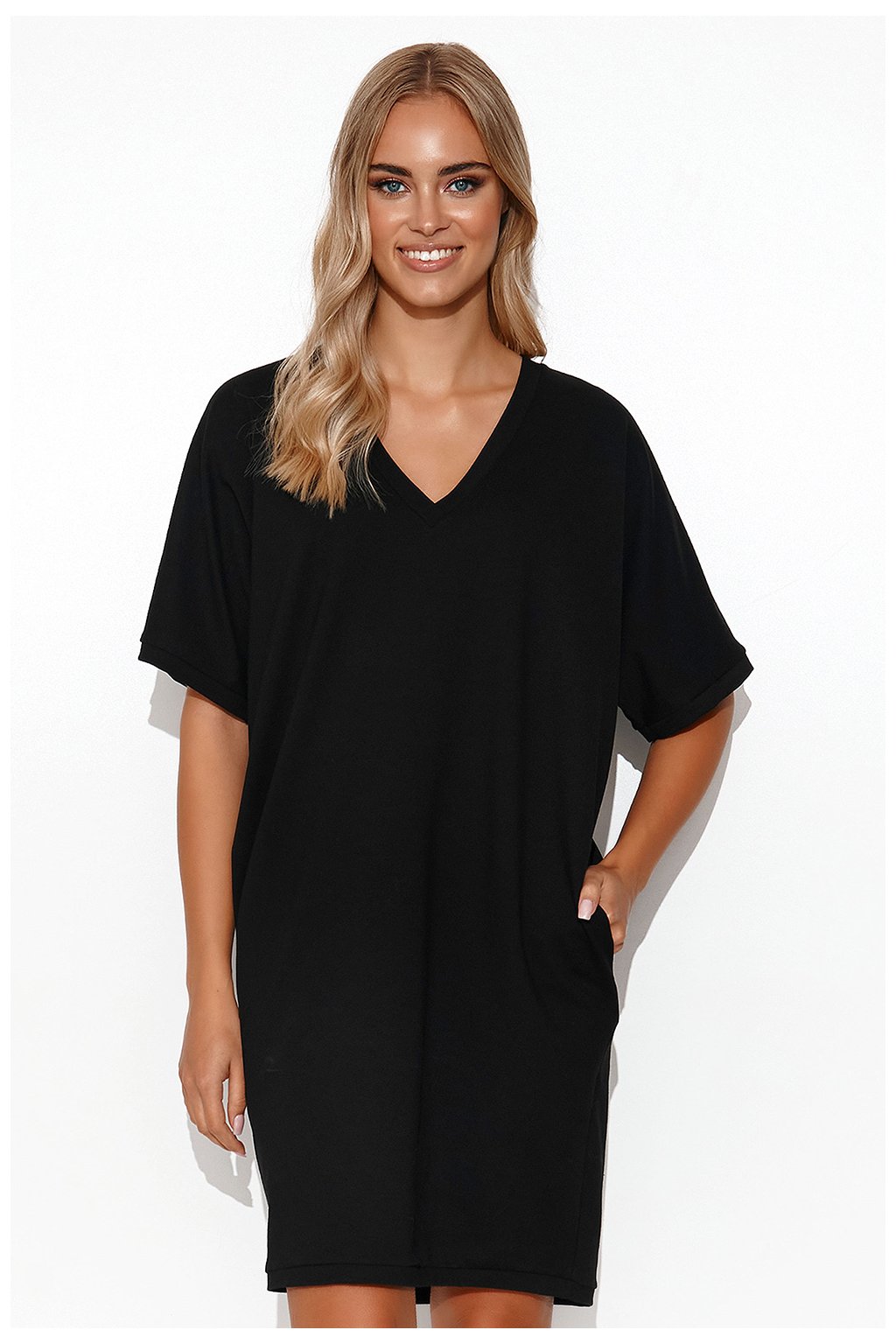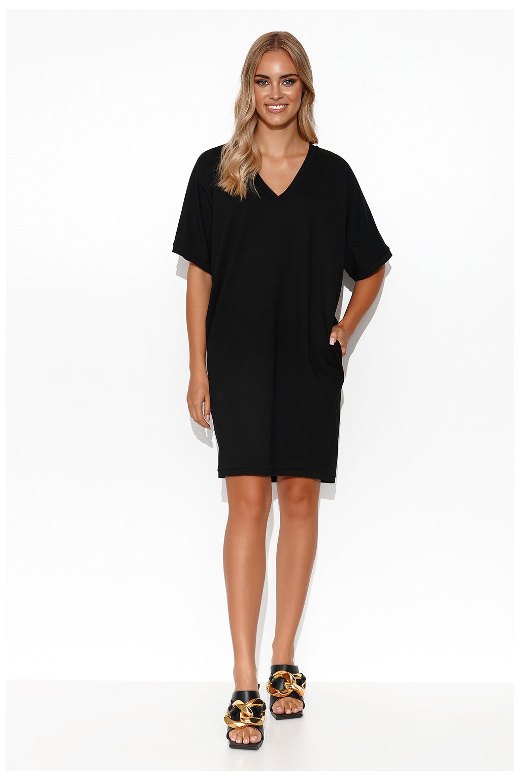 Mimořádně ležérní, minimalistické mikinové kimonové šaty. Jejich délka zdůrazňuje nohy, takže se skvěle hodí k botám. Drzý výstřih odhaluje klíční kosti a vytváří prostor pro krásné šperky. Na bocích jsou nakládané kapsy. Šaty umožňují volnost pohybu. Dámy s postavou typu jablko se v nich budou cítit skvěle. Šaty maskují oblast břicha a opticky prodlužují krk. Krátké kimonové rukávy zabraňují odhalování spodního prádla. Díky tomu působí tepláky žensky a elegantně.Elastan 5 %
