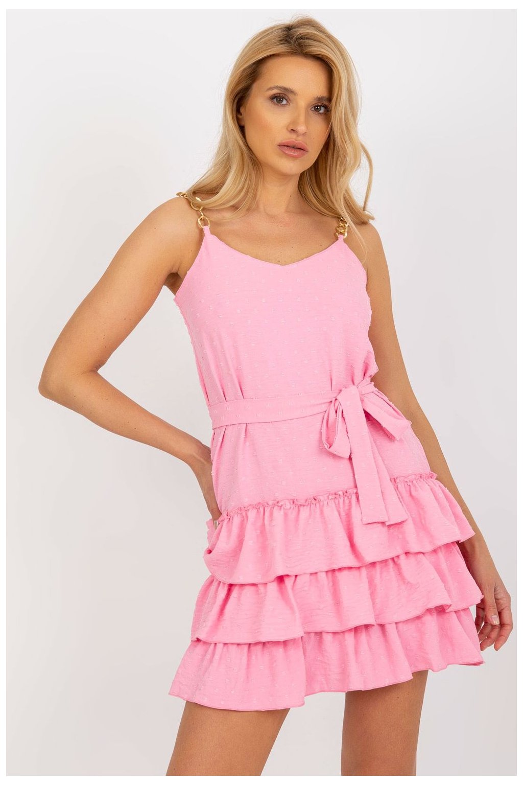 Elegantní šaty s dlouhými průhlednými rukávy. Krásná mašle v pase, kterou lze uvázat mnoha způsoby, a krytý zip na zádech. Model krásně zdůrazňuje…