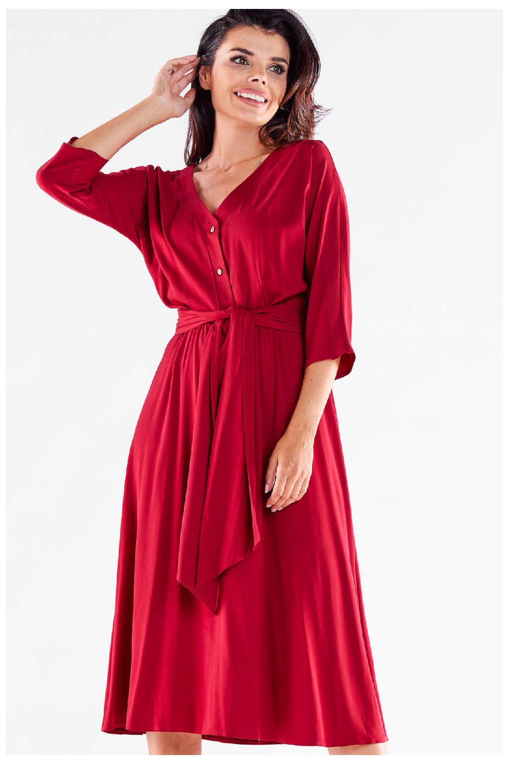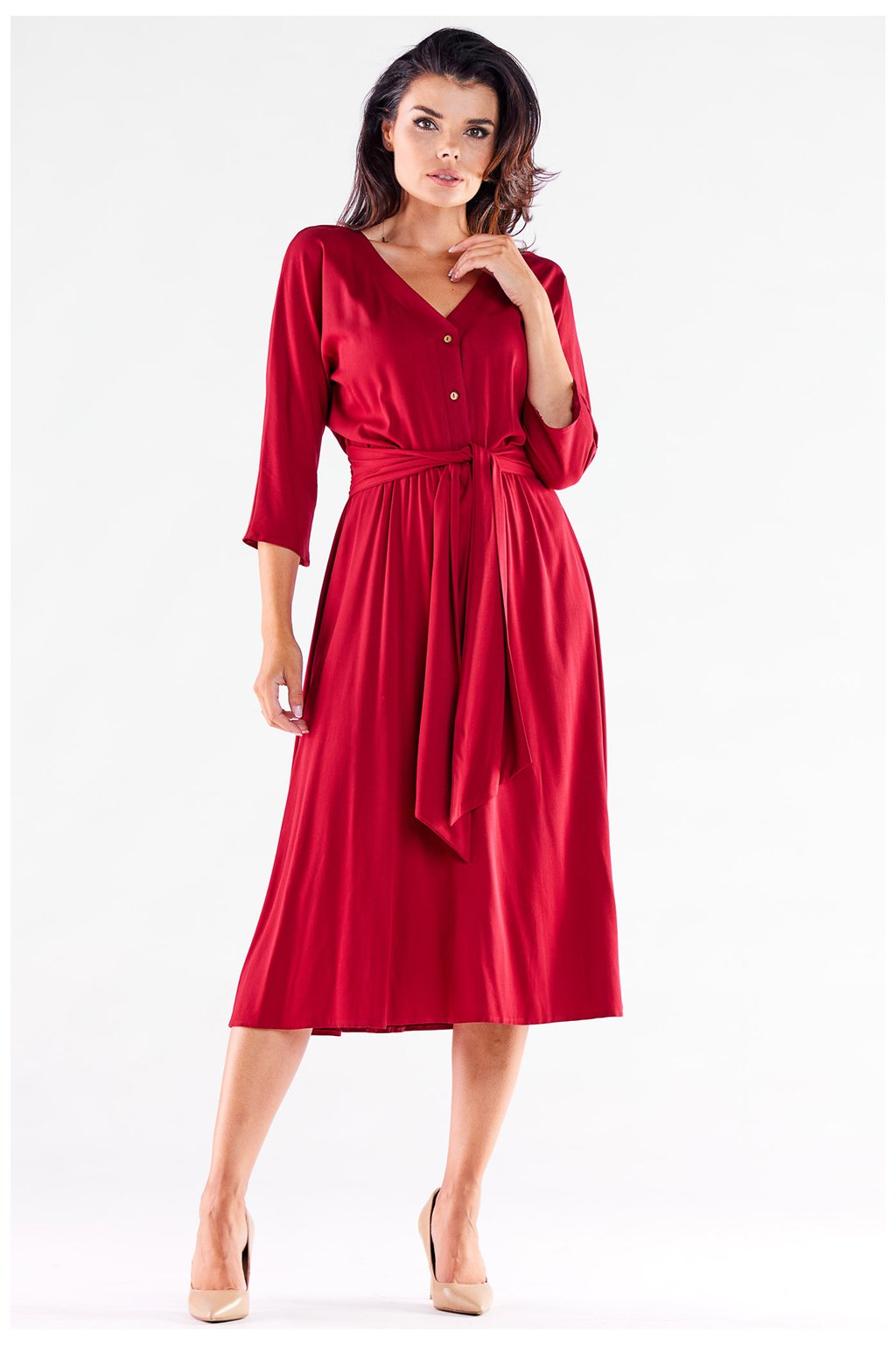 Midi šaty s trapézovým spodním dílem zapínaným na knoflíky, doplněné barevným páskem. Midi šaty jsou must have této sezóny! Opticky zeštíhlují siluetu. Jsou lehké a vzdušné, skvěle se hodí jako šaty pro každou příležitost! Navrženo a ušito v PolskuViskóza 97 %