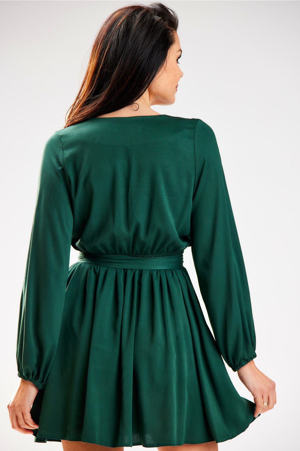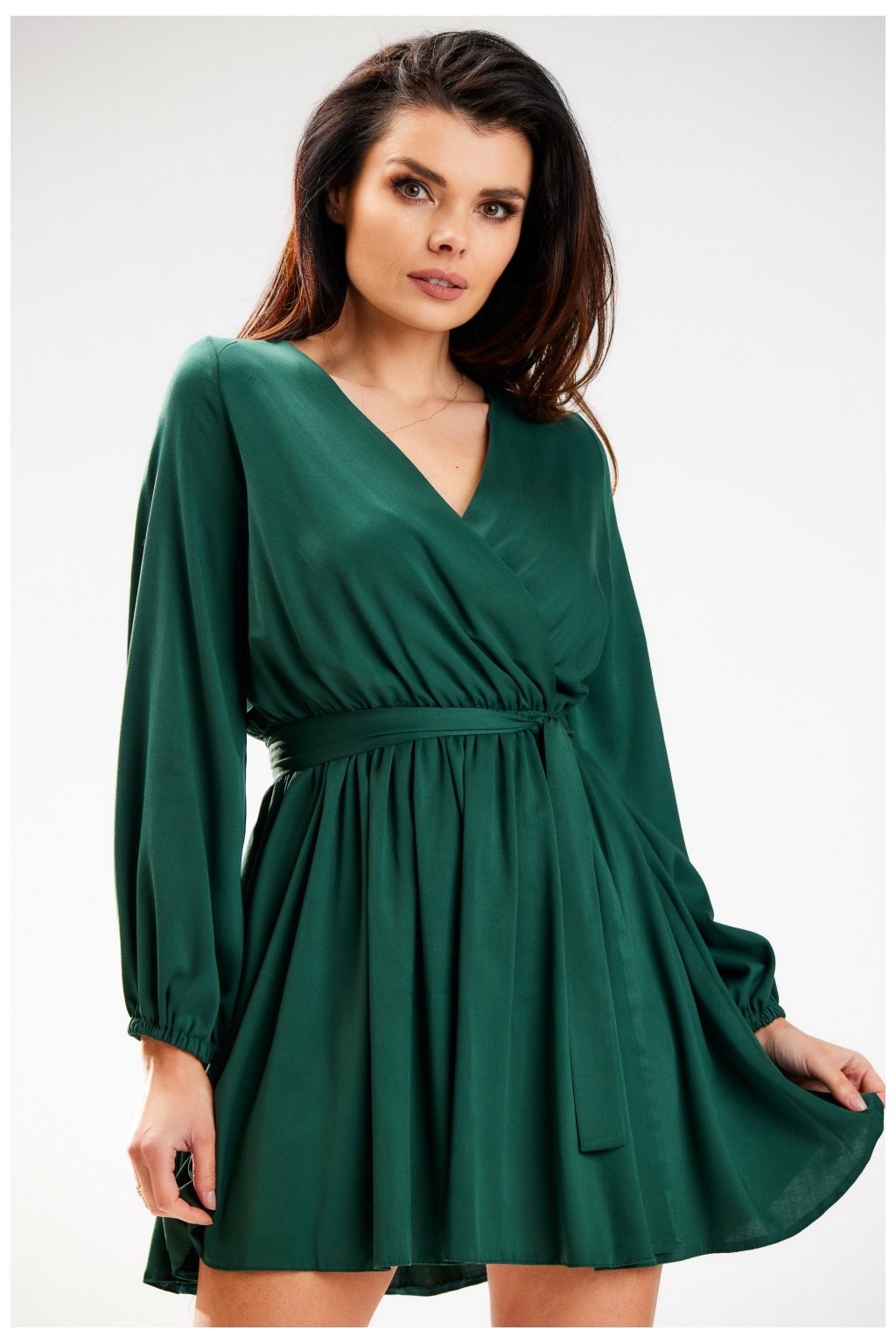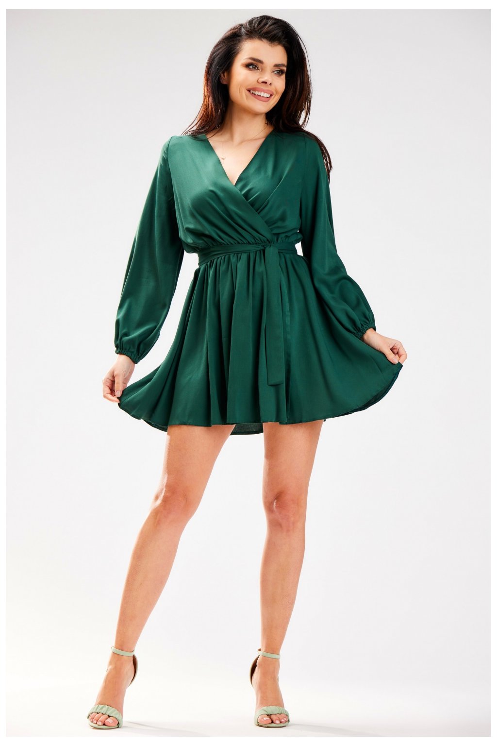Šaty v délce mini s dlouhými rukávy, zakončené gumičkou. V pase je všitá guma a mírně rozšířený spodní lem. Součástí je pásek ušitý ze stejné barvy a materiálu. Skvěle se budou hodit k jehlovým podpatkům na různé oslavy, stejně jako k teniskám na každodenní nošení. Navrženo a ušito v Polsku.Viskóza 97 %