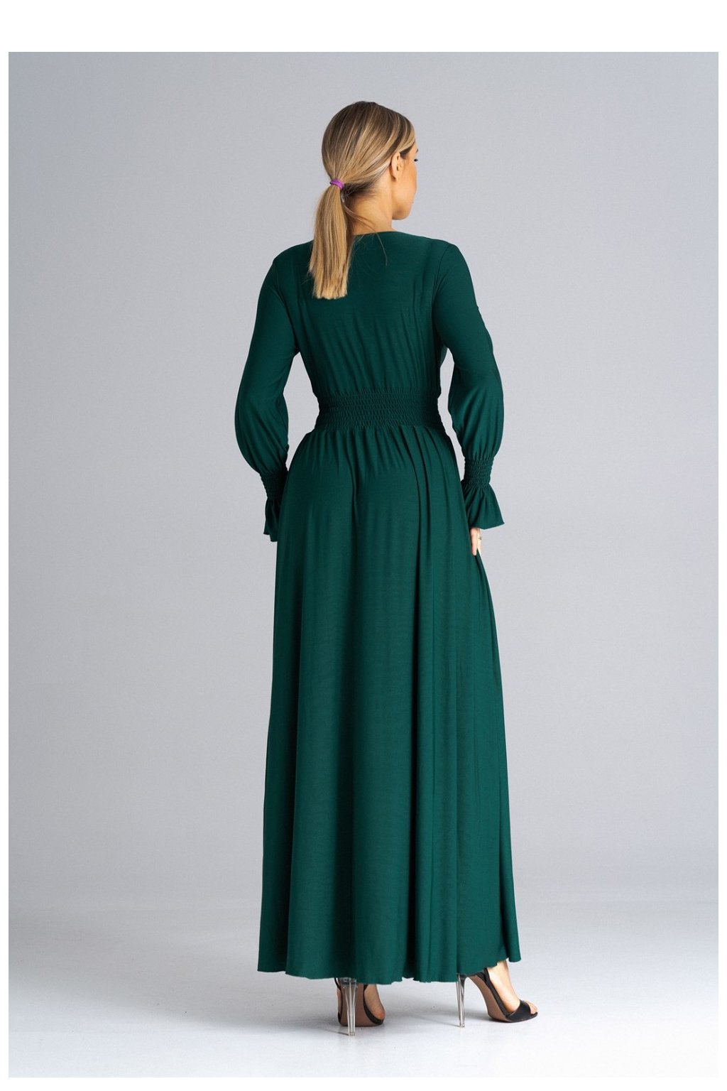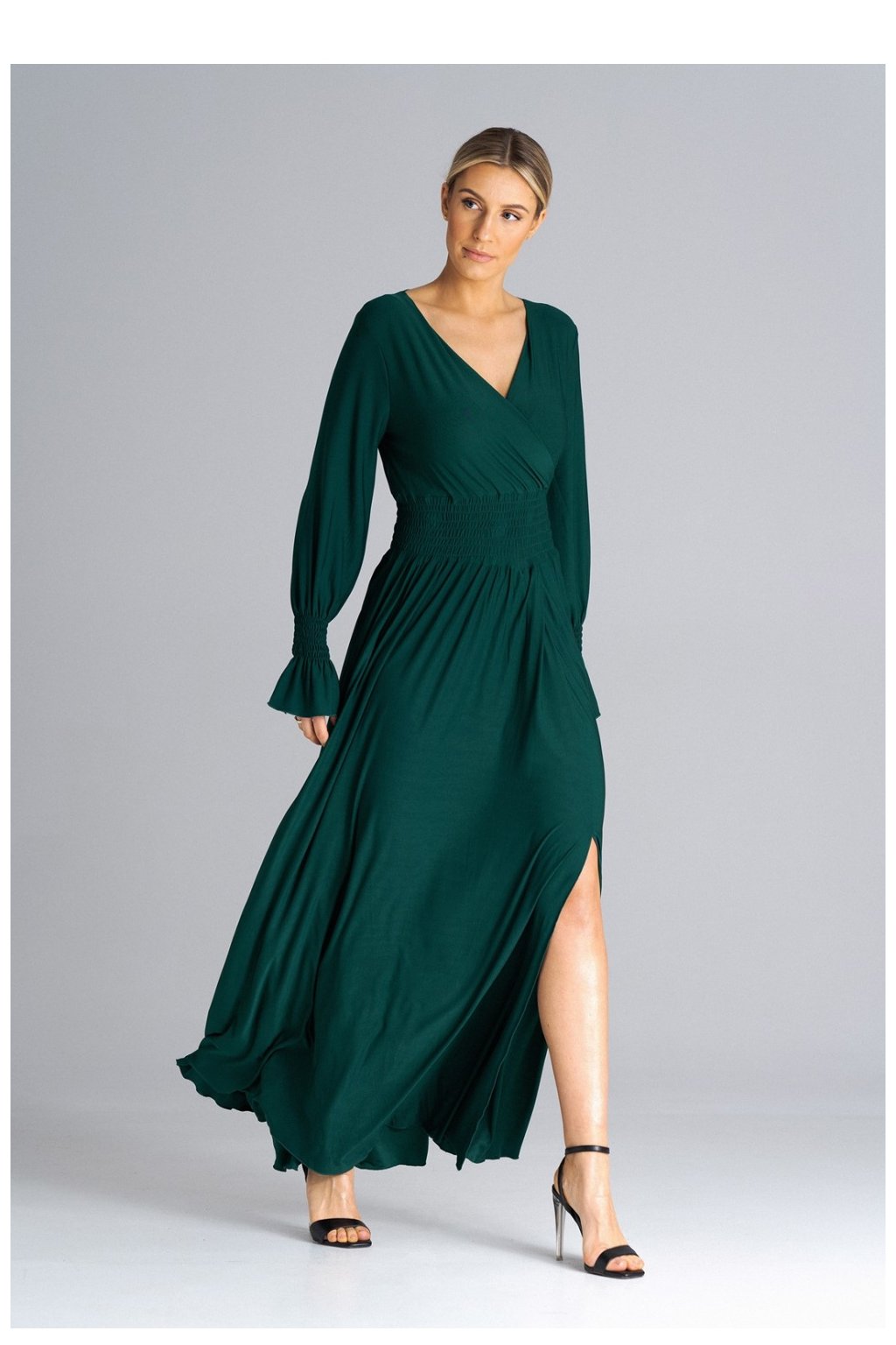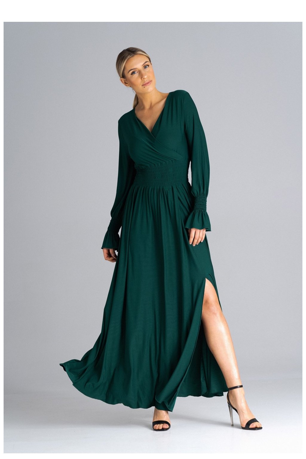 Zde jsou krásné maxi šaty, které vynikají jedinečným stylem. Bufetové rukávy zdobí řasení s gumičkami, které jim dodává eleganci a šarm. Výstřih je vsazený, což dodává šatům jemný nádech. Řasení v pase zdůrazňuje pas a dodává lehkost. Na levé nohavici je poutavý rozštěp, který dodává šatům nádech sex-appealu a umožňuje volný pohyb. Tyto šaty jistě upoutají pozornost na nejrůznějších akcích a dodají vám sebevědomí a styl.Polyester 95 %