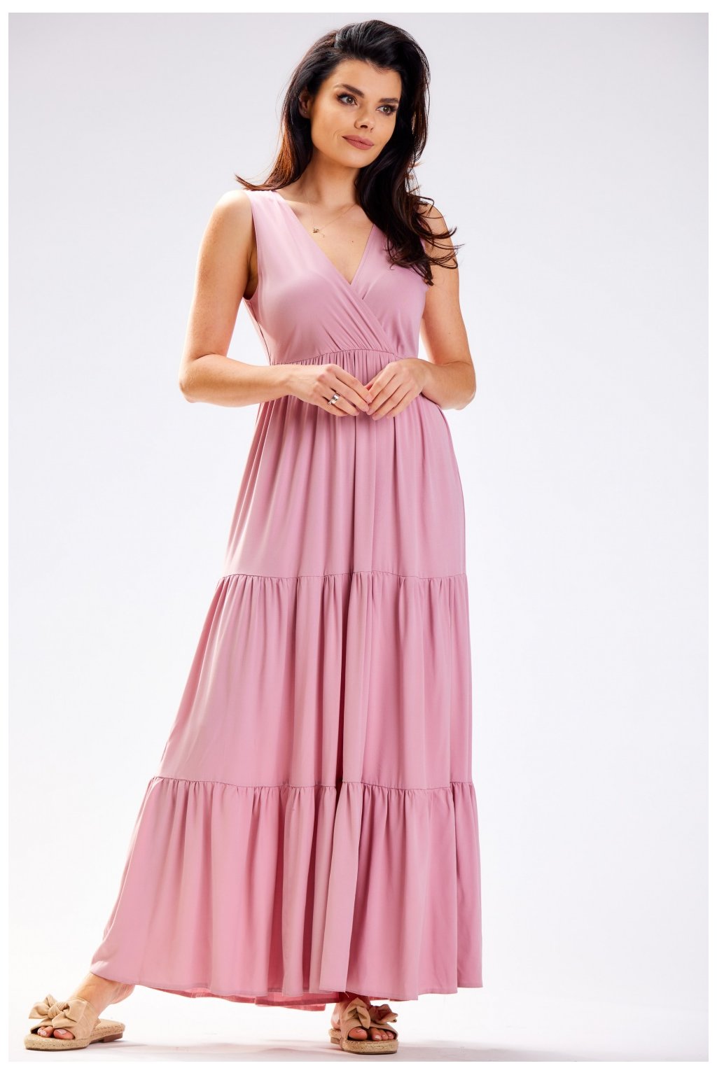 Volné šaty z přírodní viskózy, která je příjemná na dotek. Skvěle padnou při chůzi. Díky nadměrnému střihu padnou každé postavě. Spodní část šatů zdobí volánky. Šaty jsou ideální na léto. Jsou vyrobeny ze vzdušné a přírodní viskózy. Navrženo a ušito v Polsku.Viskóza 97 %