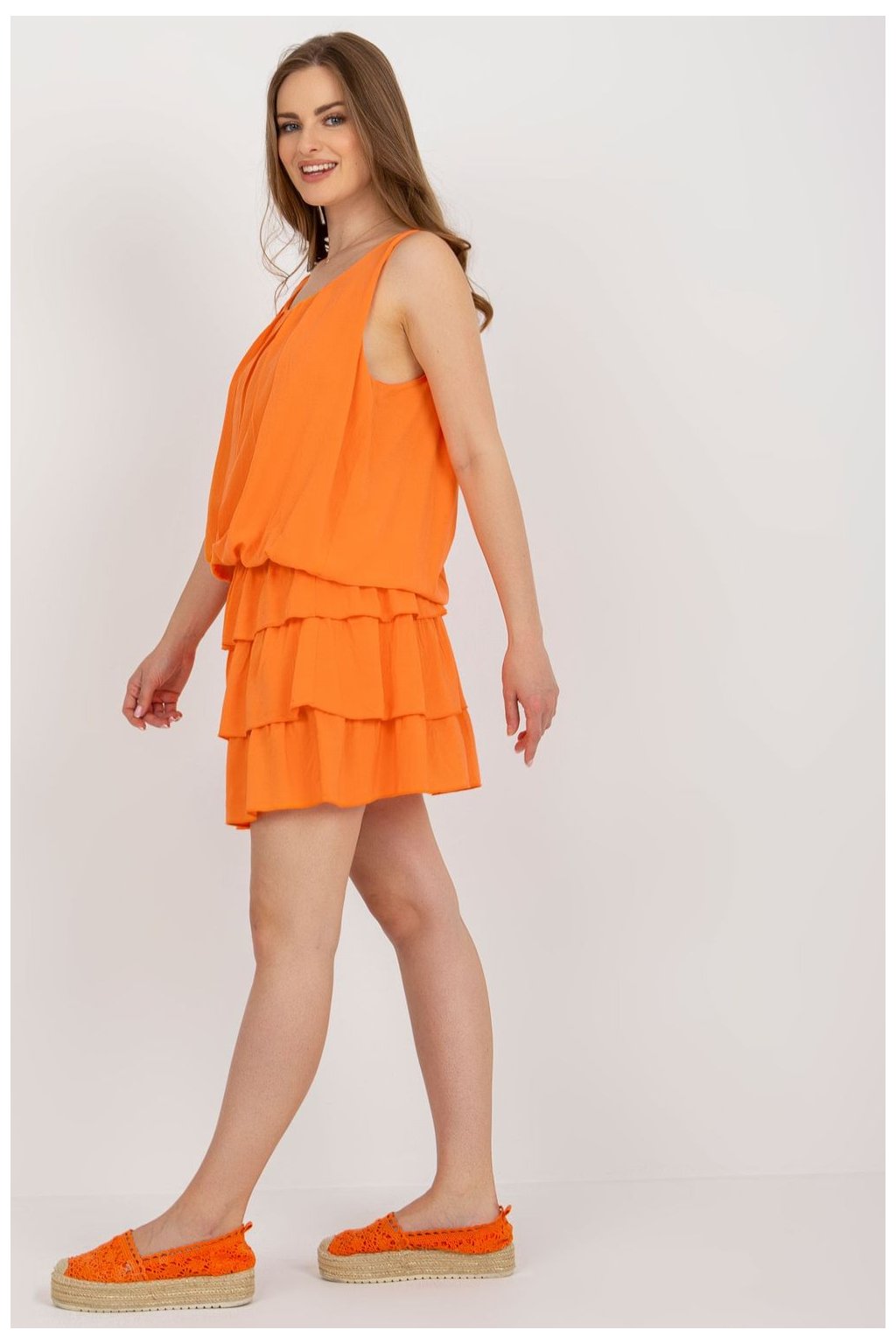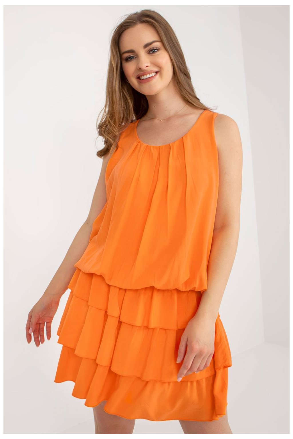Parádní model volných šatů svázaných v pase. Delší záda a volánek ve výstřihu zdůrazňují ženské tvary. Boční rozparky pro elegantní a šik vzhled.